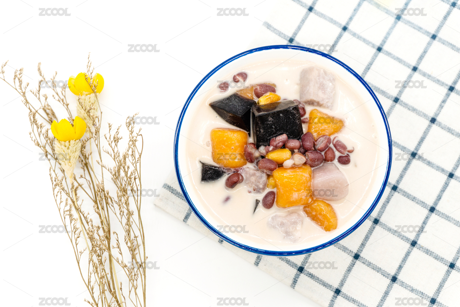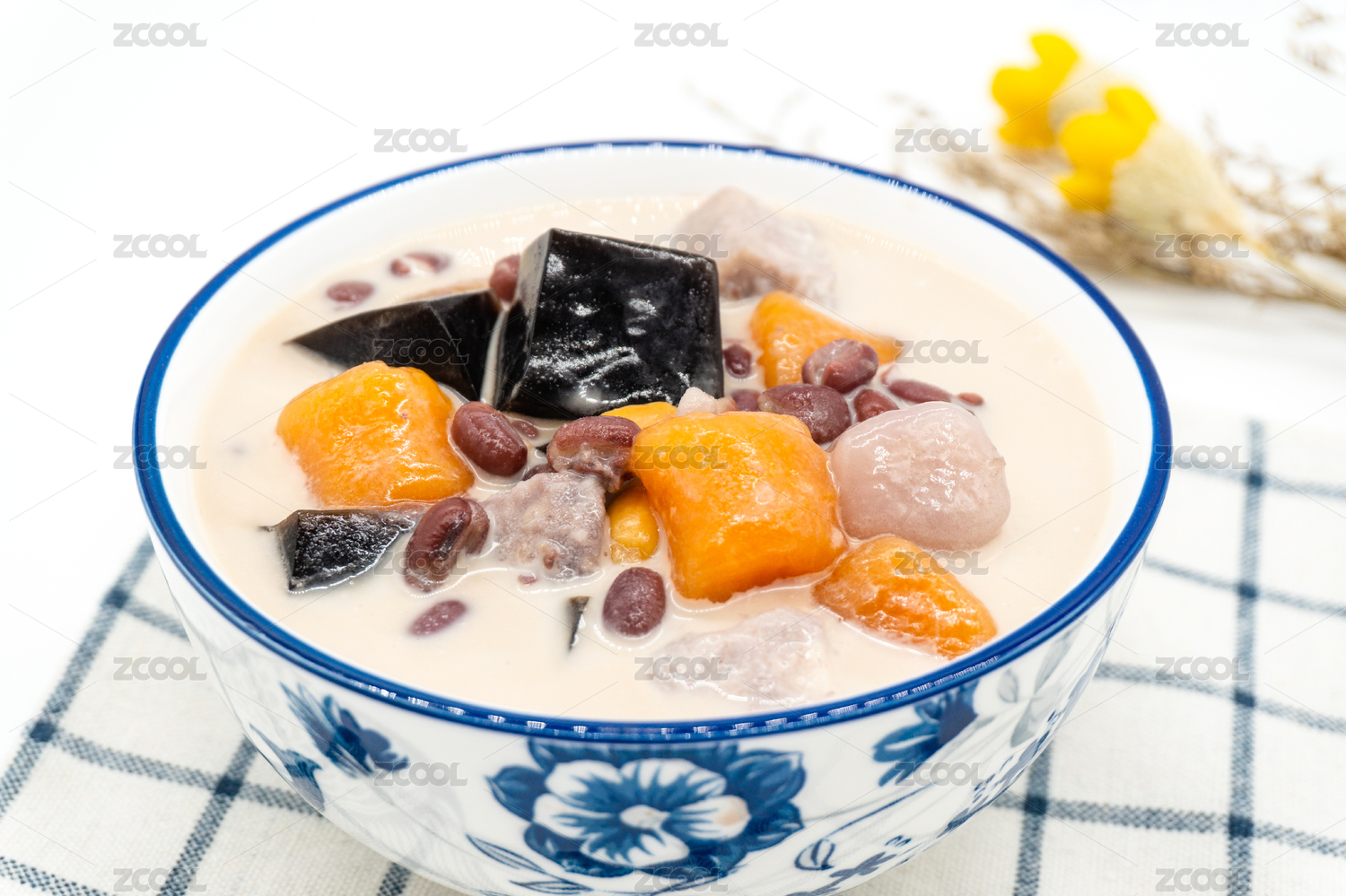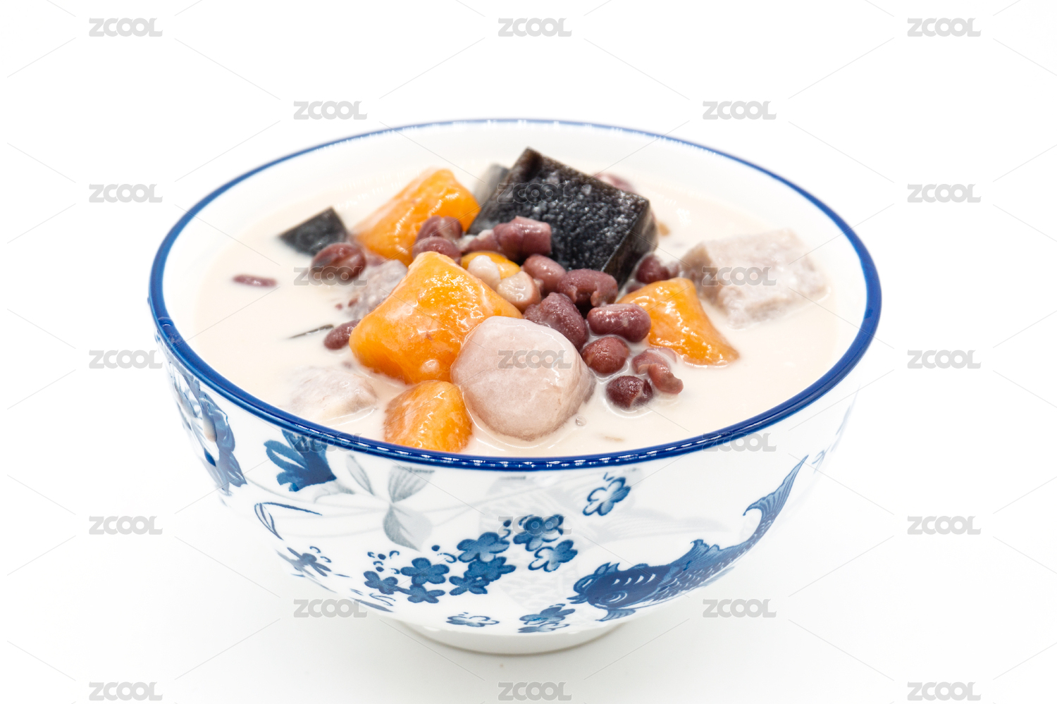 白背景一碗芋圓紅豆燒仙草甜品