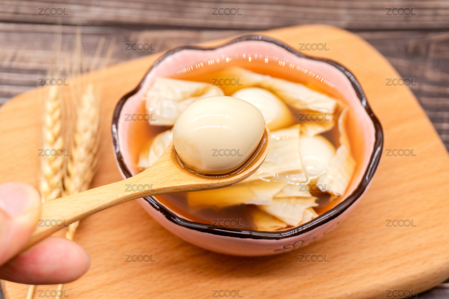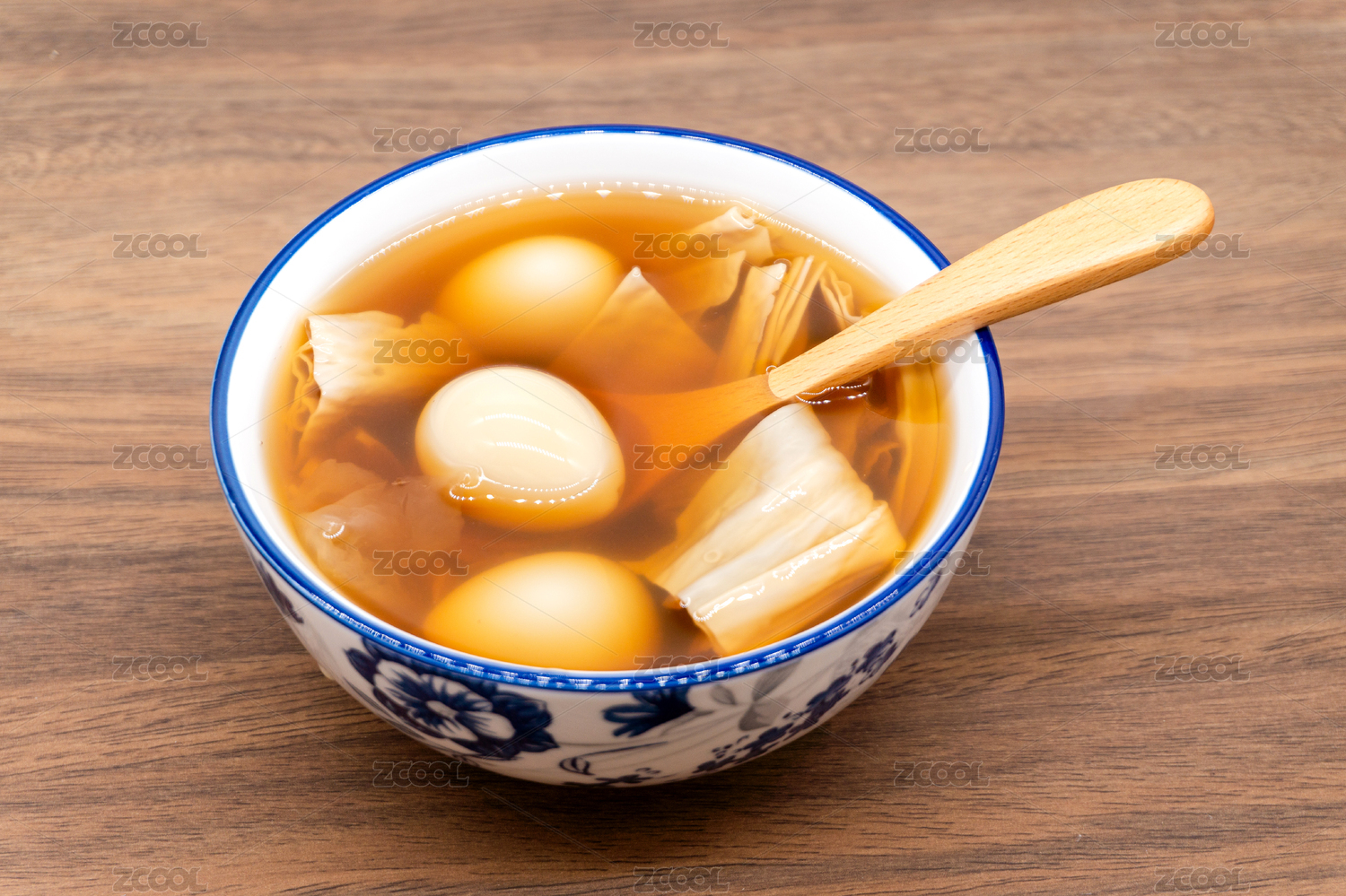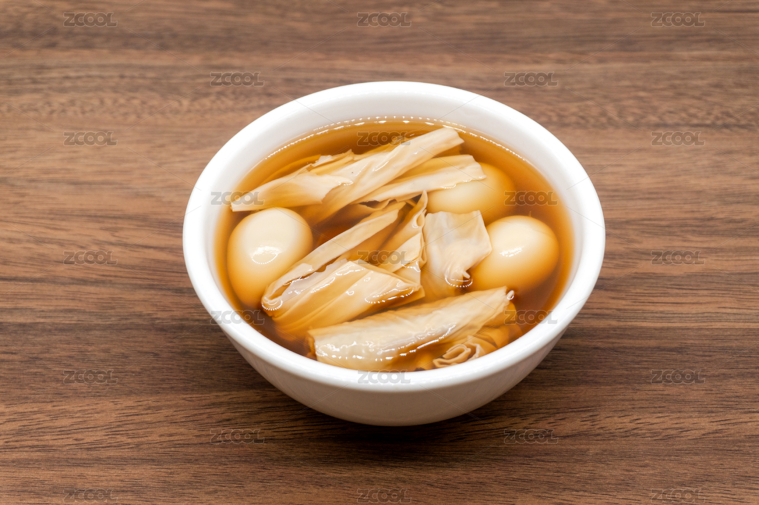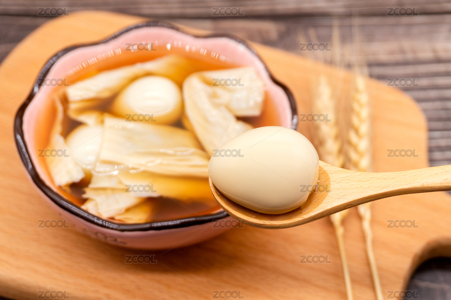 木桌背景廣式糖水腐竹鵪鶉蛋糖水
