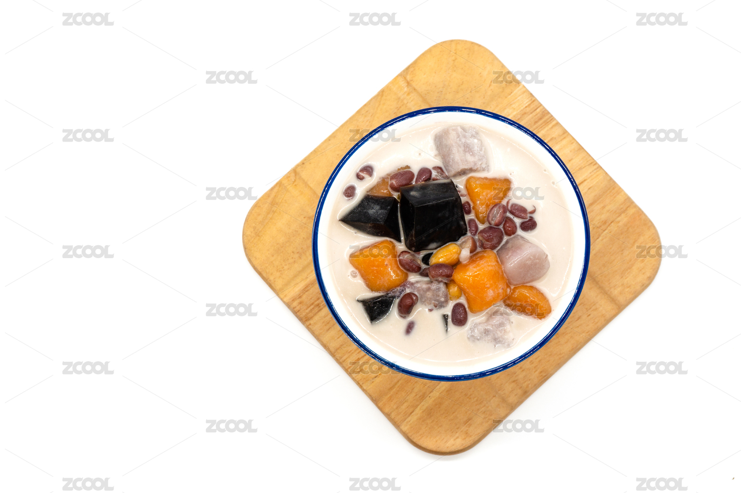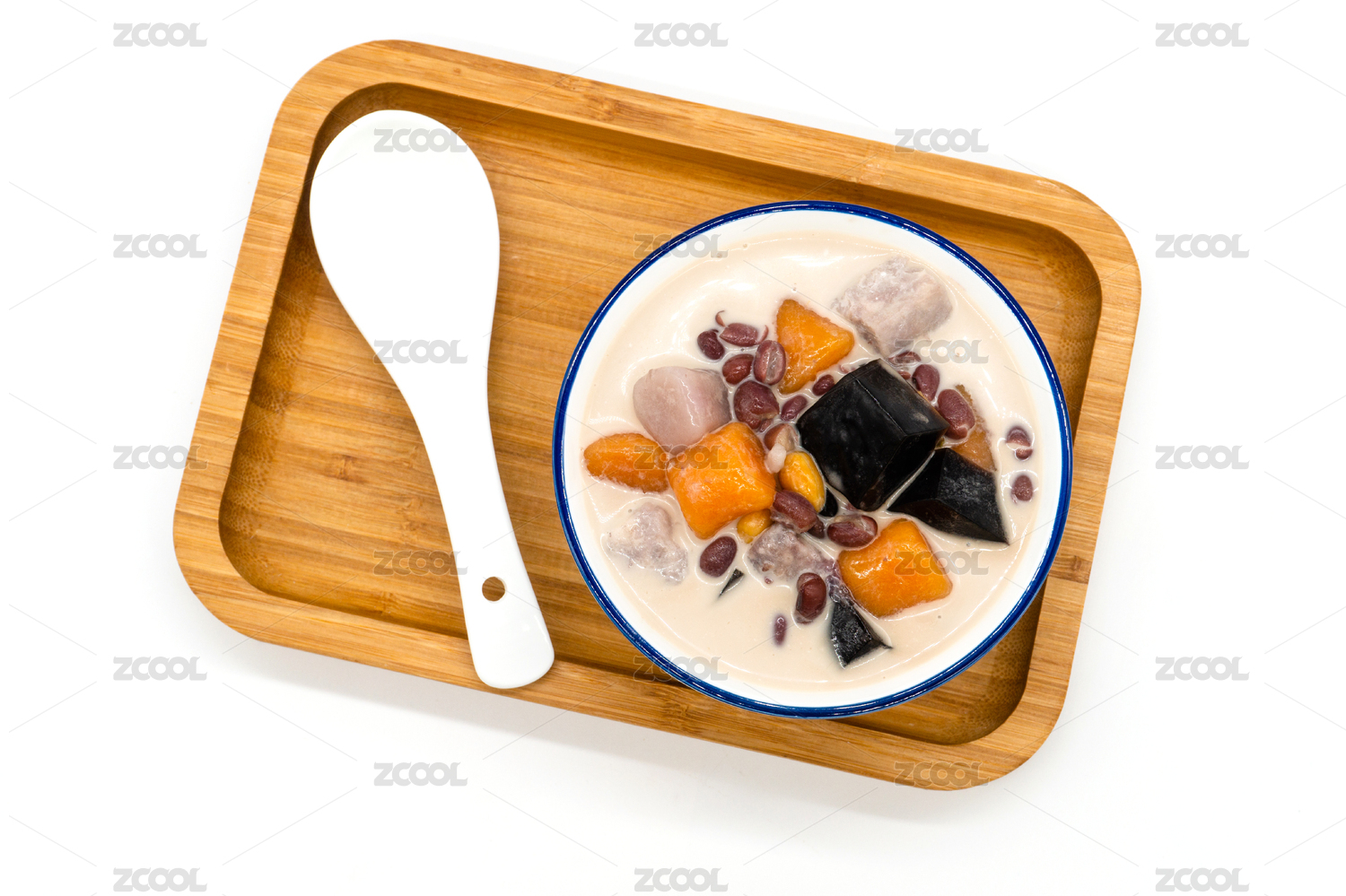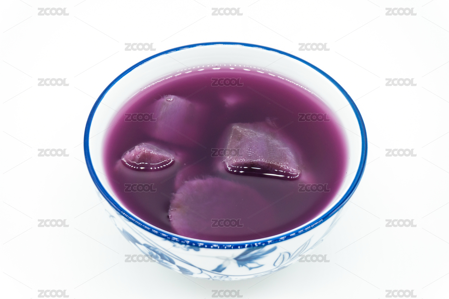 白背景夏日甜品一碗紫薯糖水