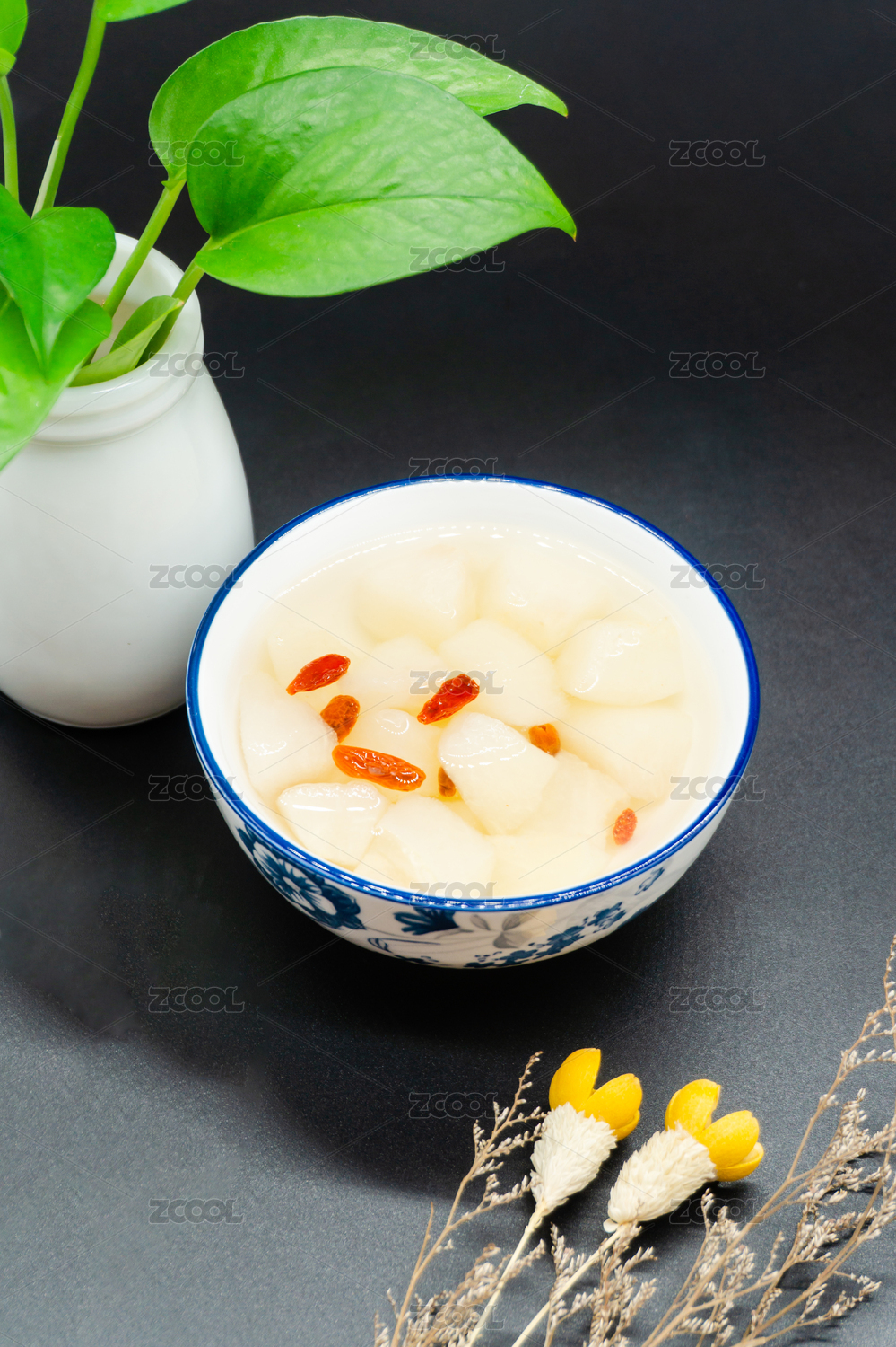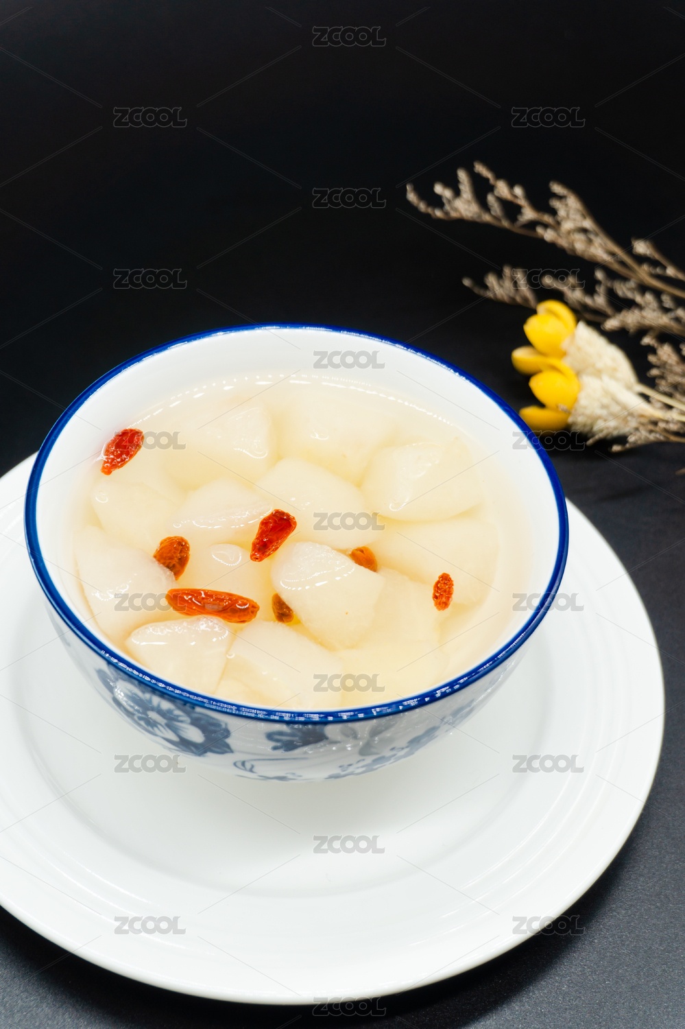 黑色背景一碗養(yǎng)生冰糖雪梨糖水