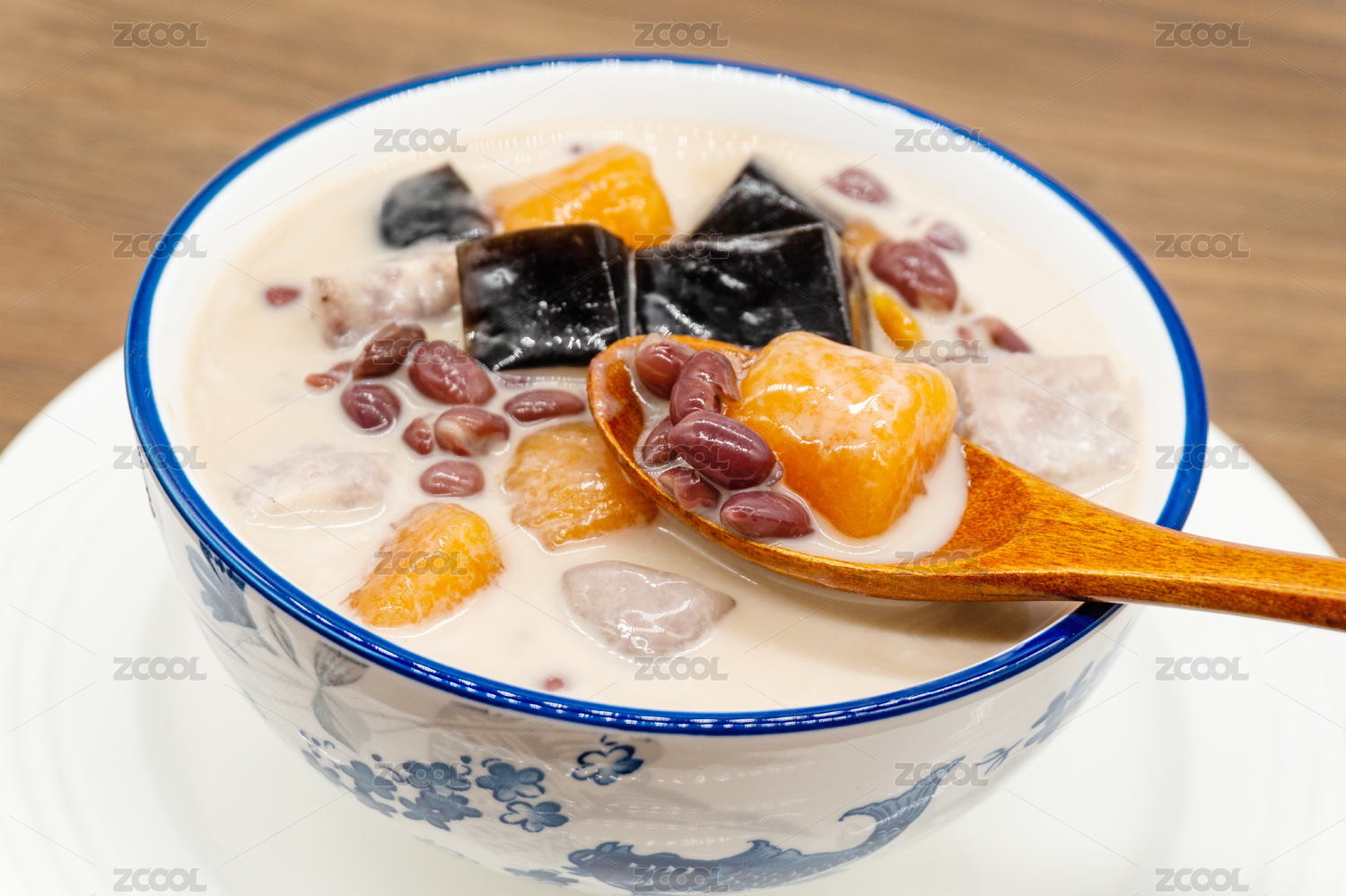 木背景夏日甜品一碗紫薯糖水