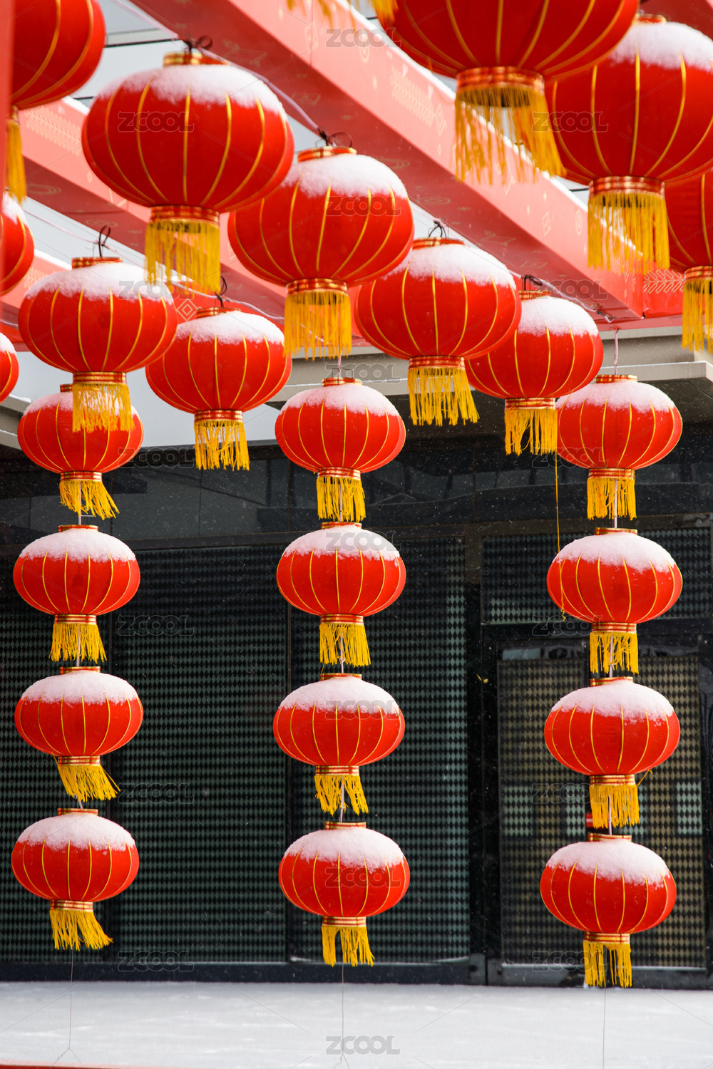 雪中隨風(fēng)飄動(dòng)的大紅燈籠