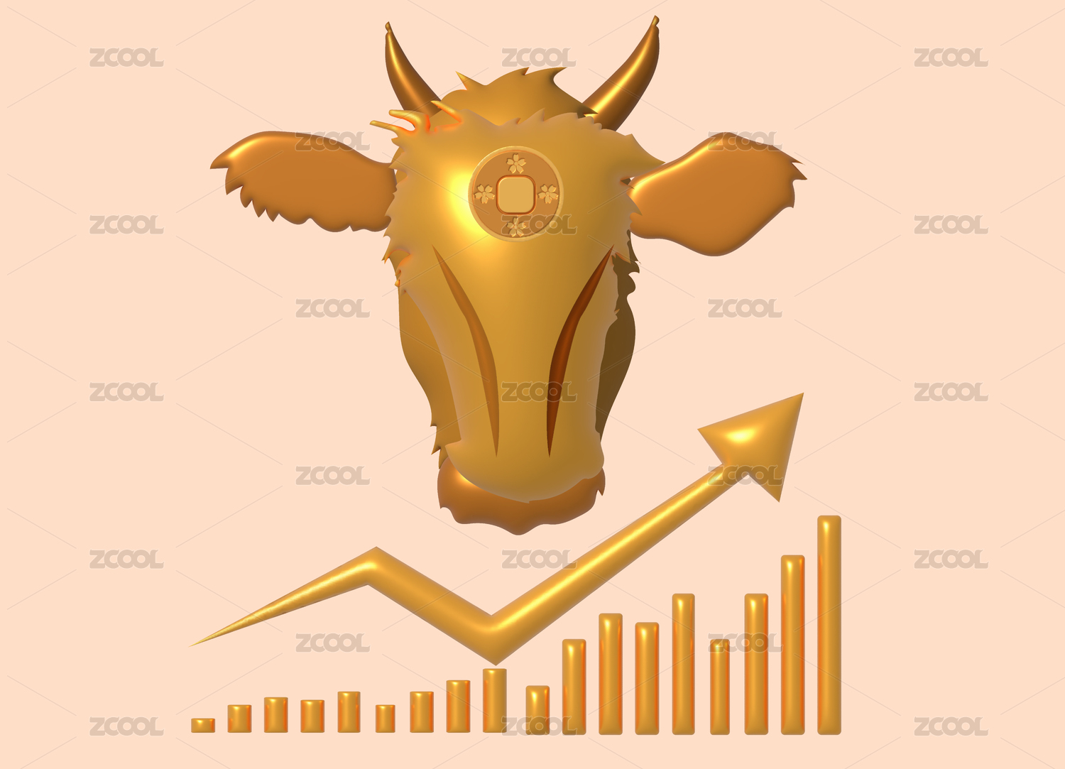 牛市股票股價上漲,金牛雕塑股市吉祥物概念