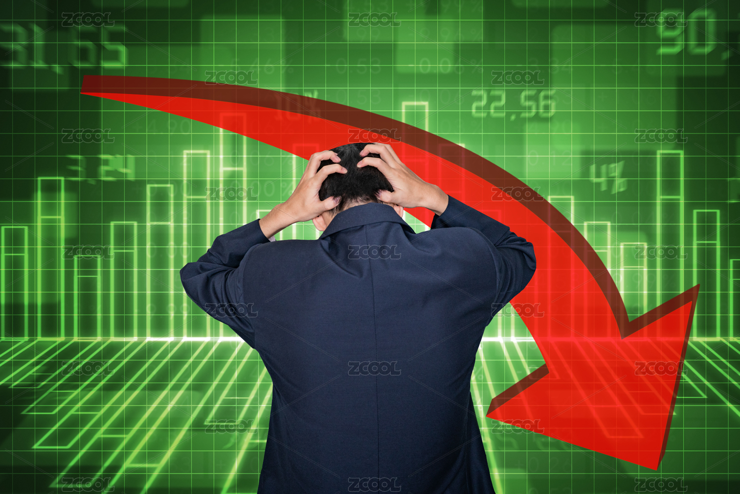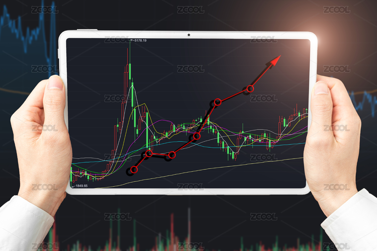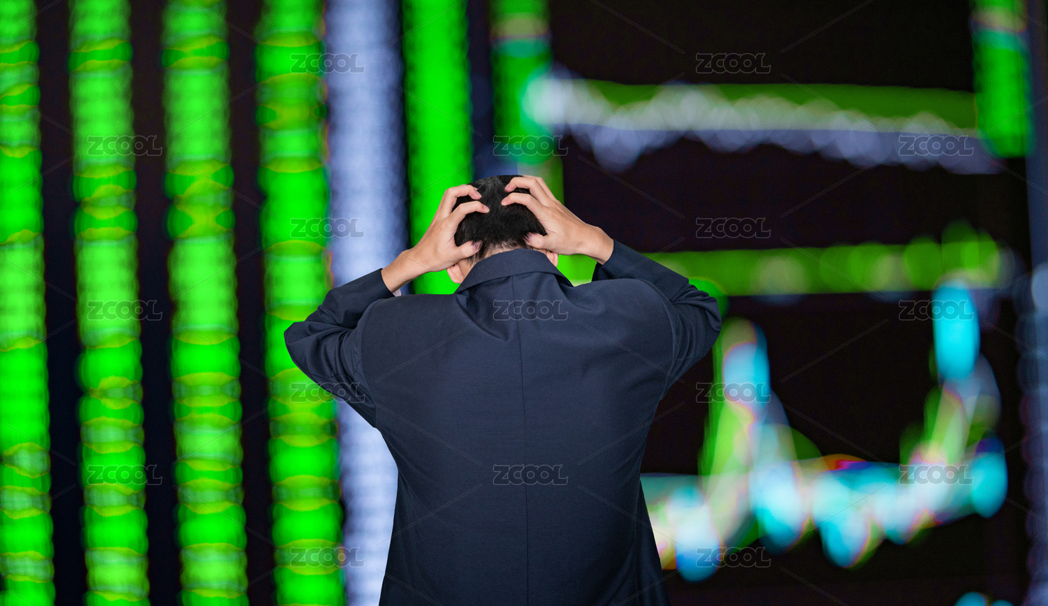 站在金條上觀察虛擬貨幣股價曲線的商務人士