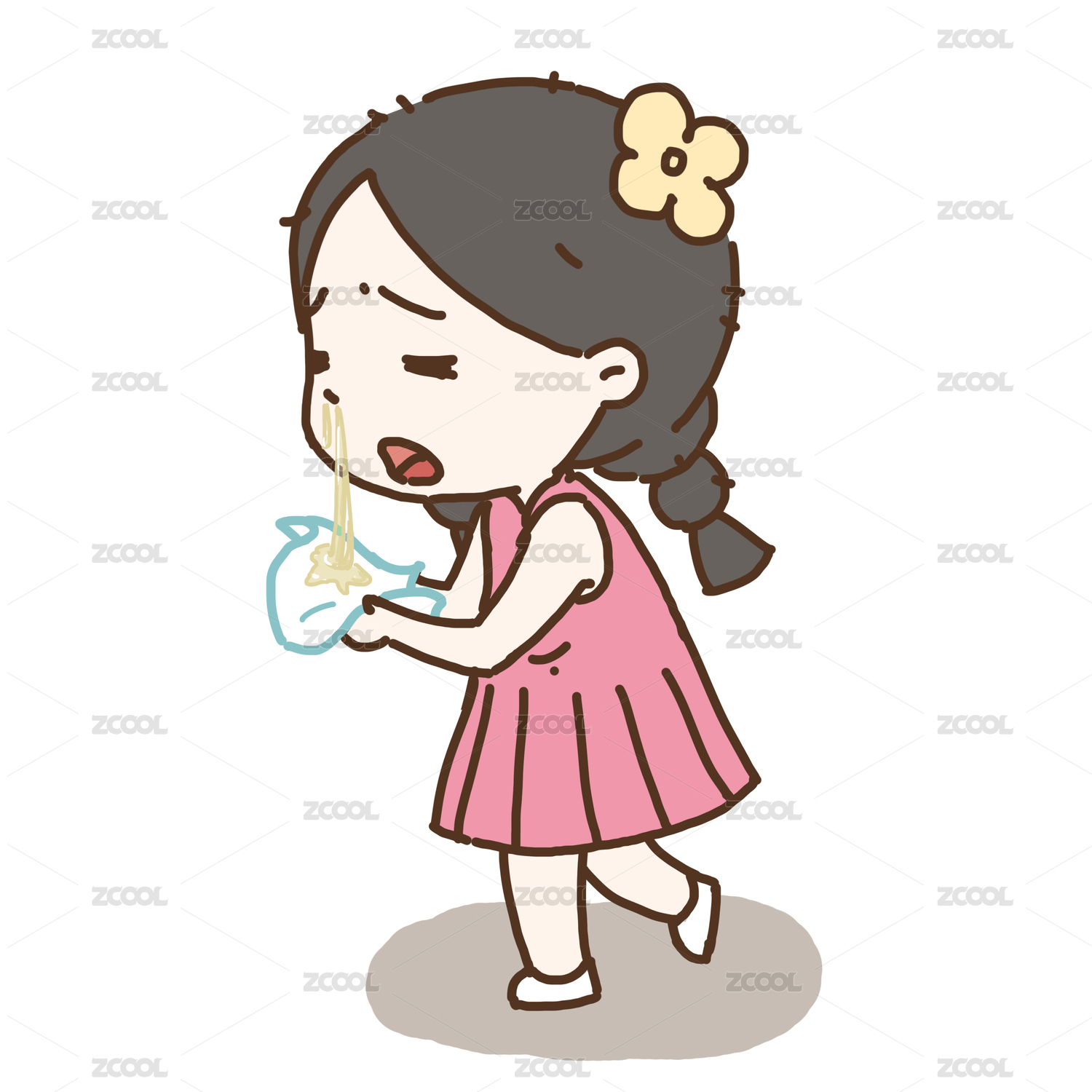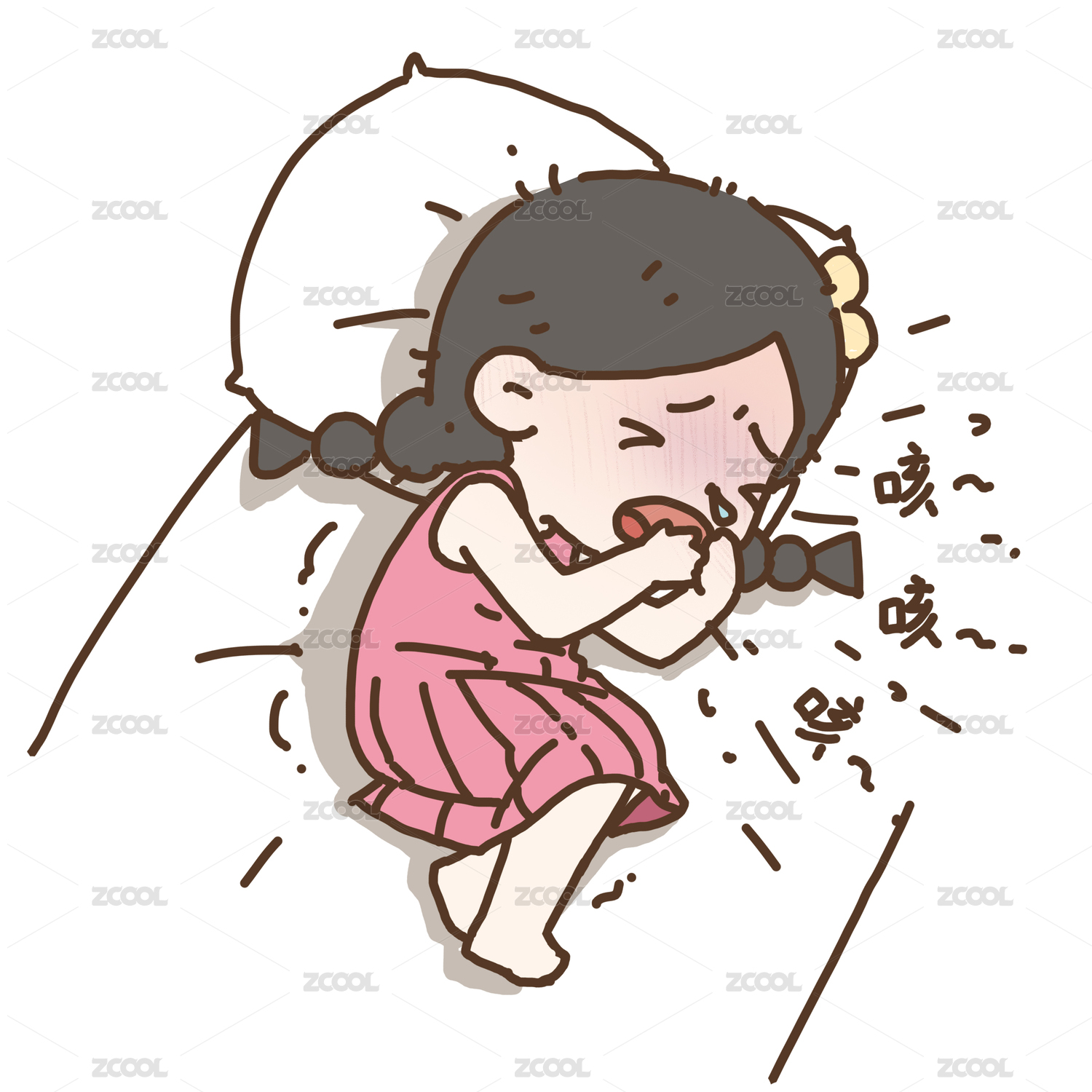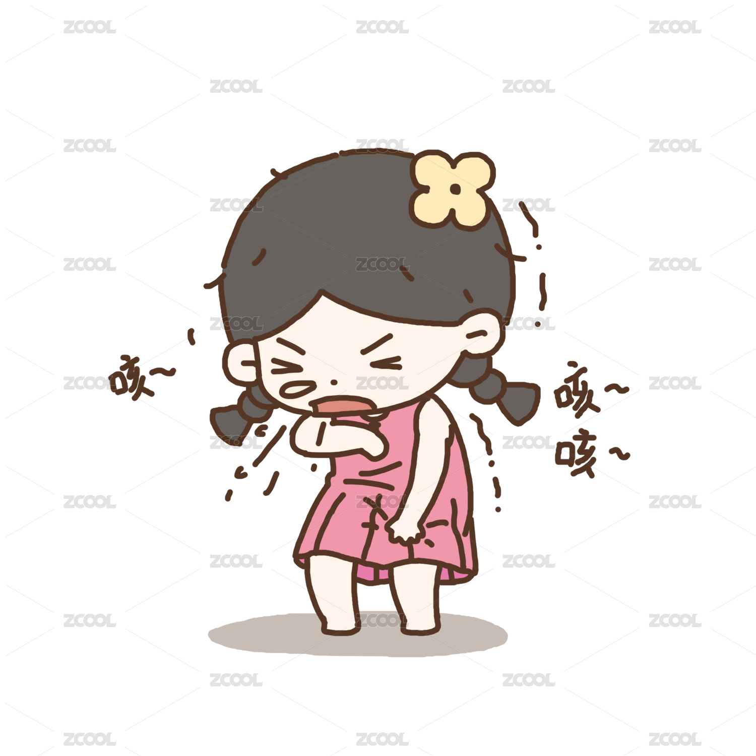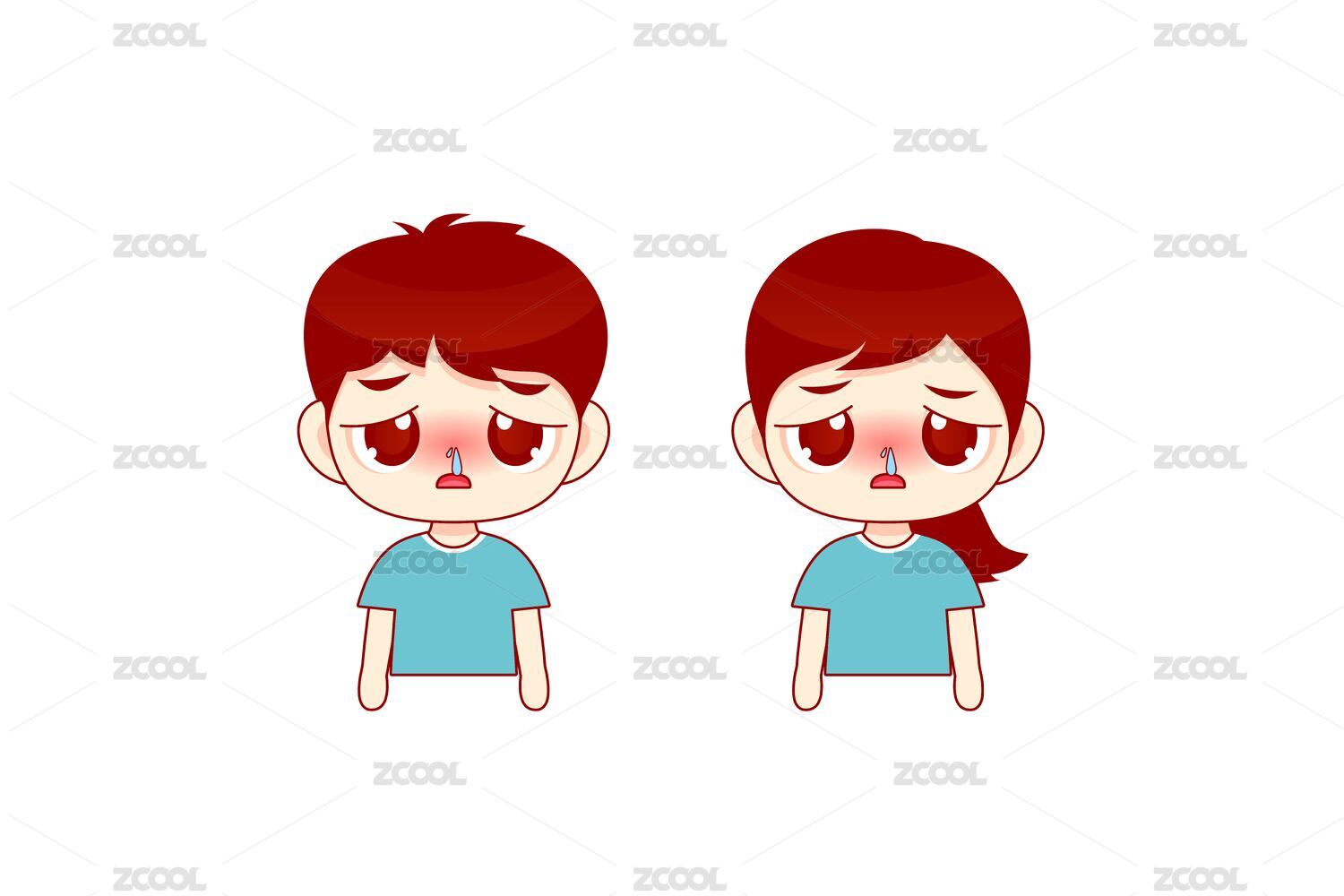 感冒流鼻涕用紙巾擦鼻子的小女孩