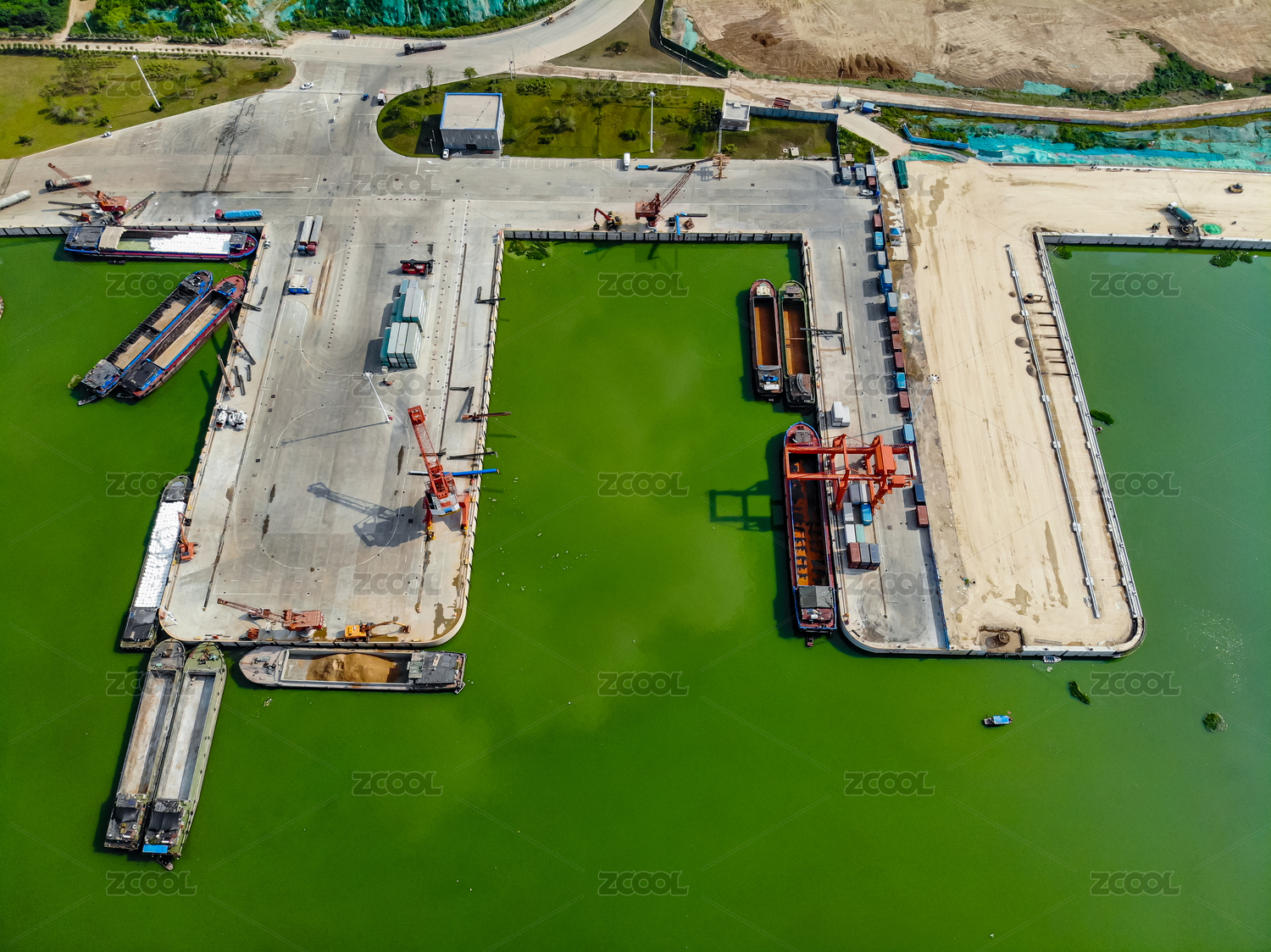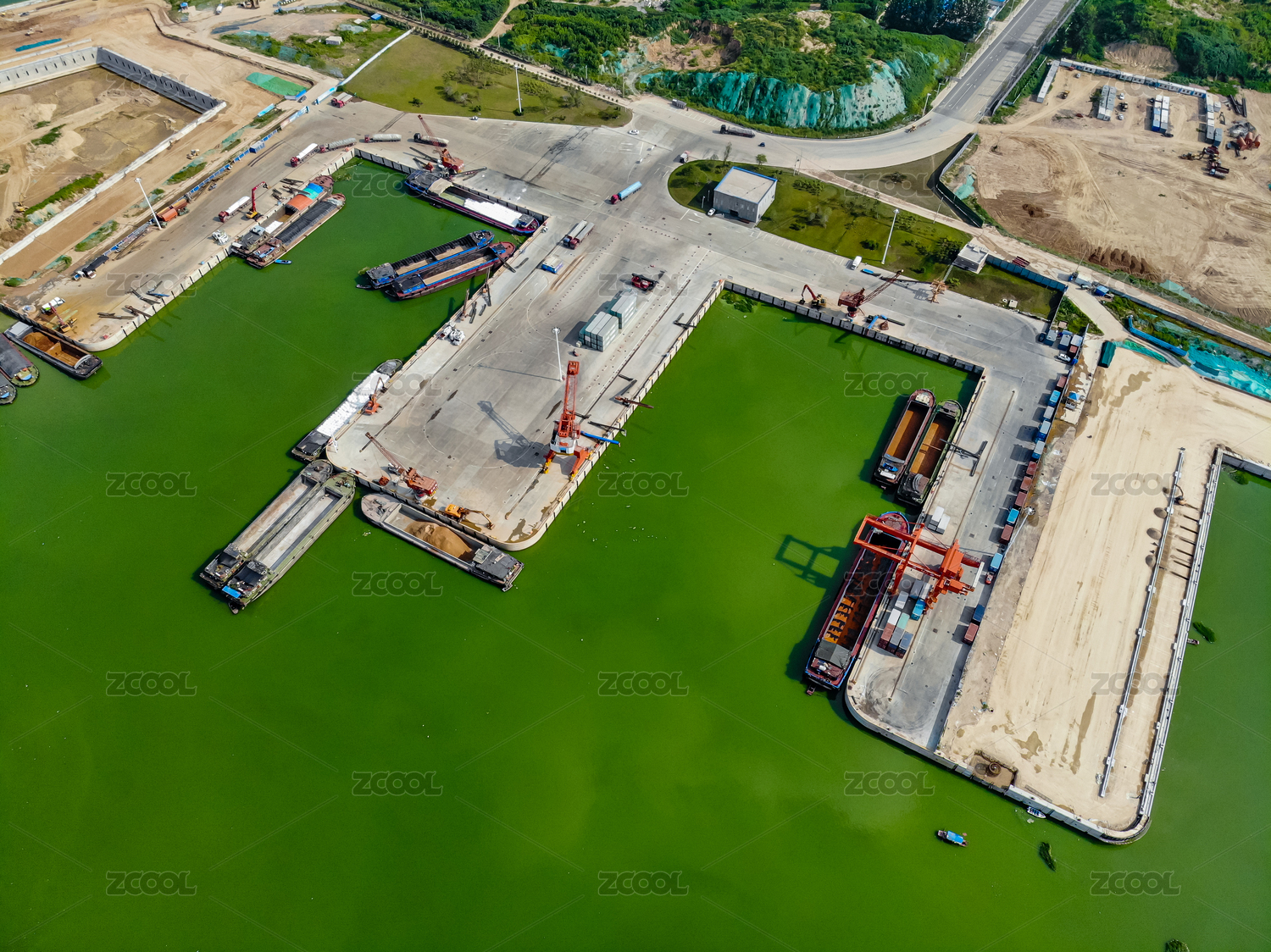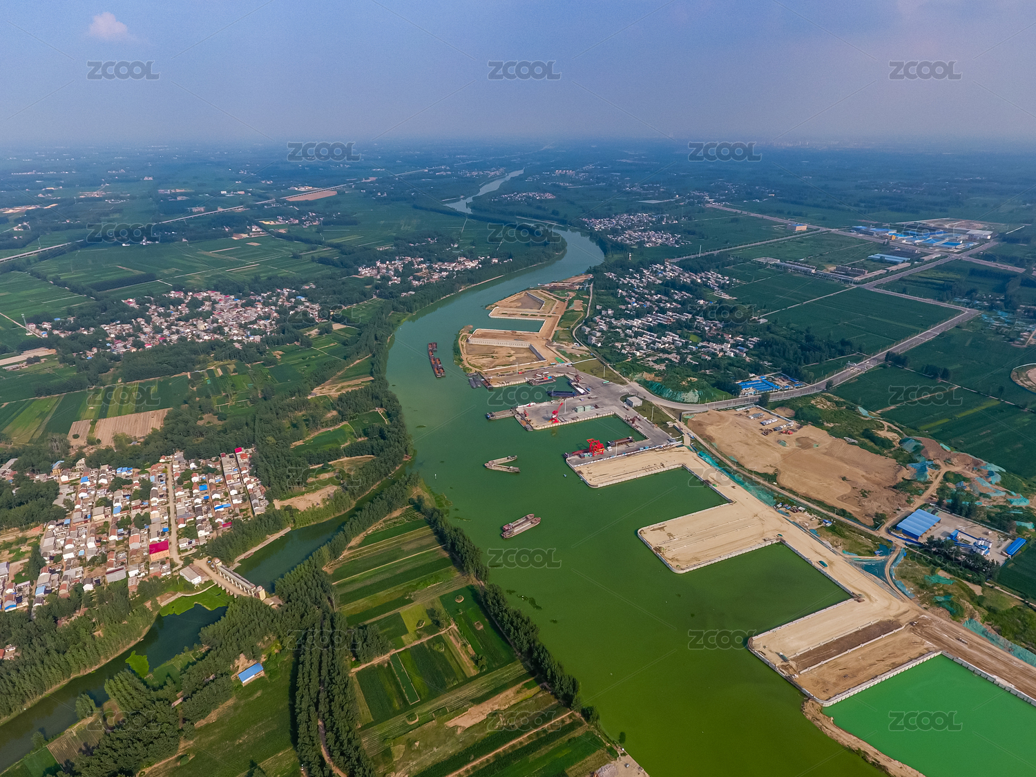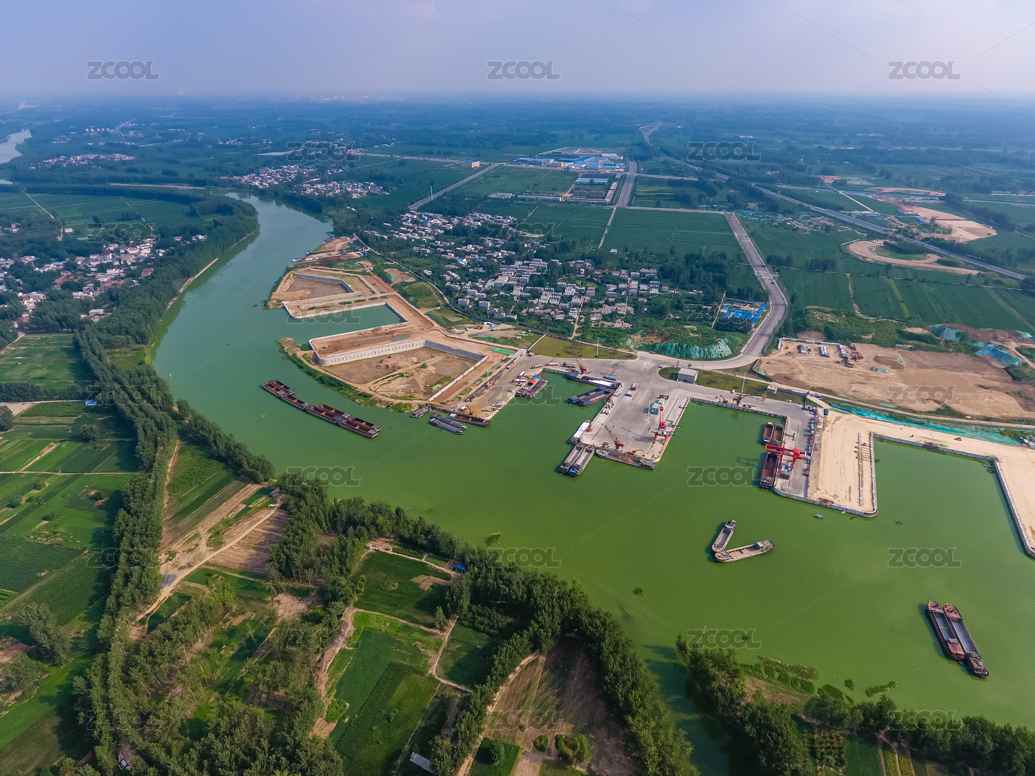 航拍河南周口中心港港口碼頭沙潁河內(nèi)河航運(yùn)