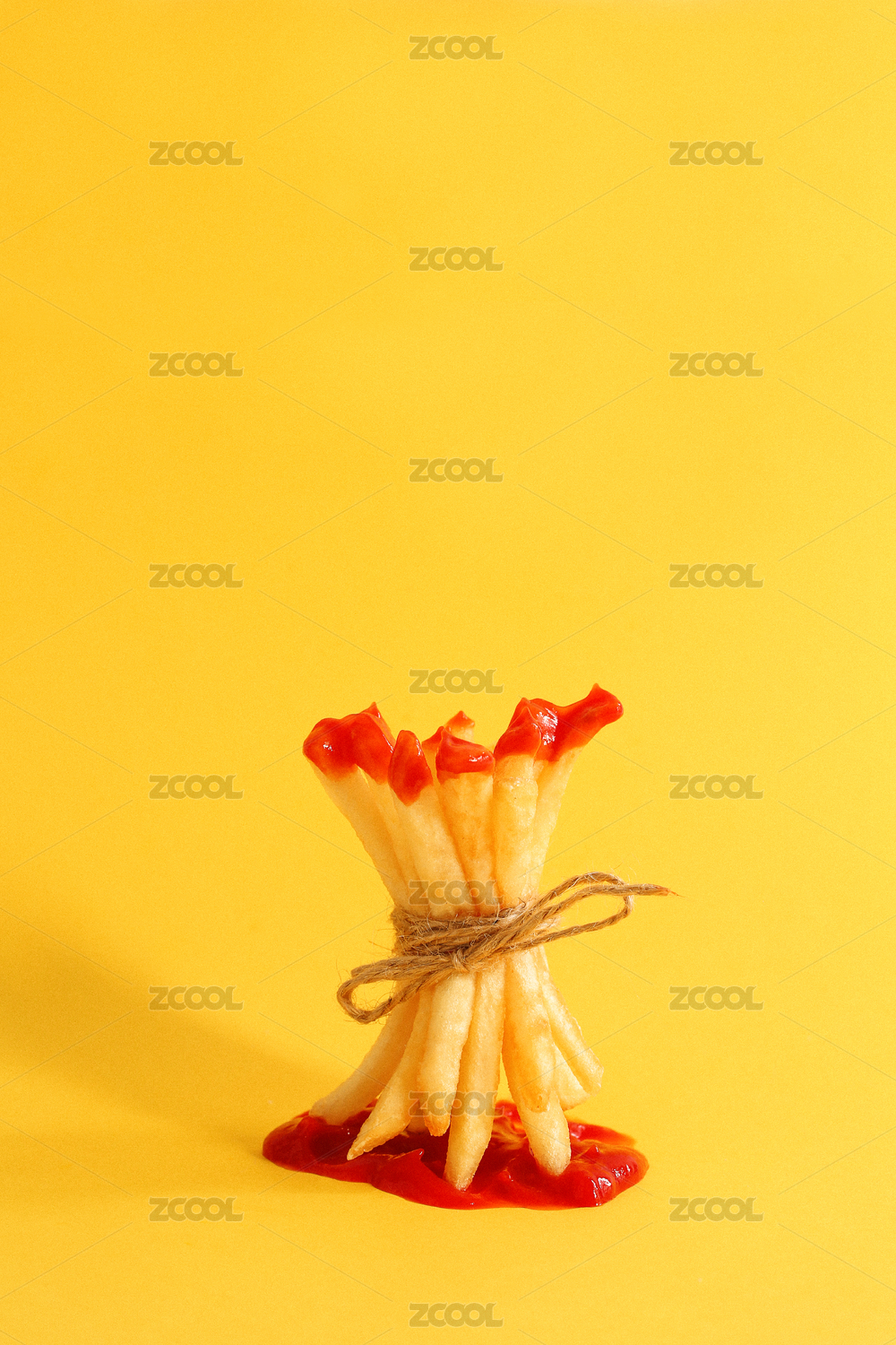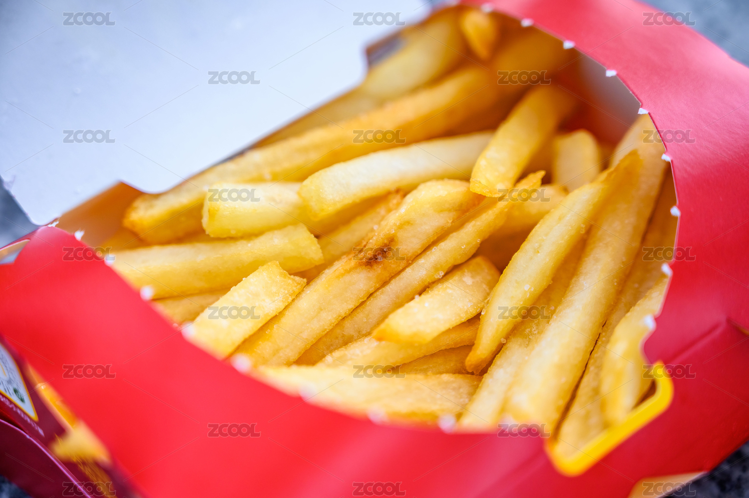 紅盒子裝著金黃的油炸薯?xiàng)l素材圖
