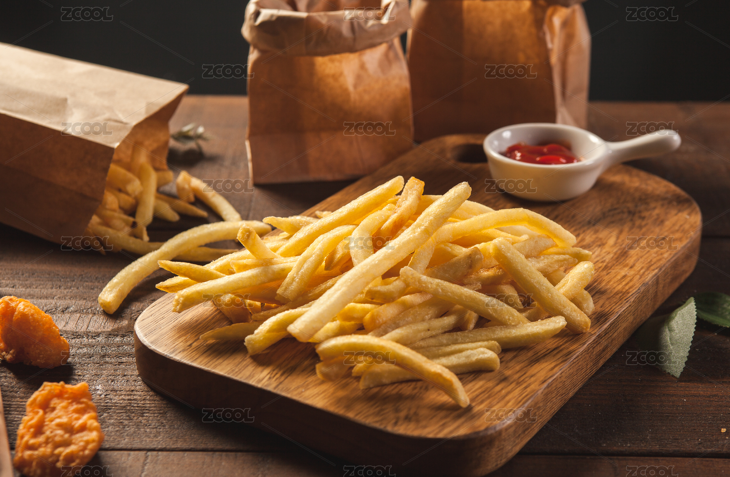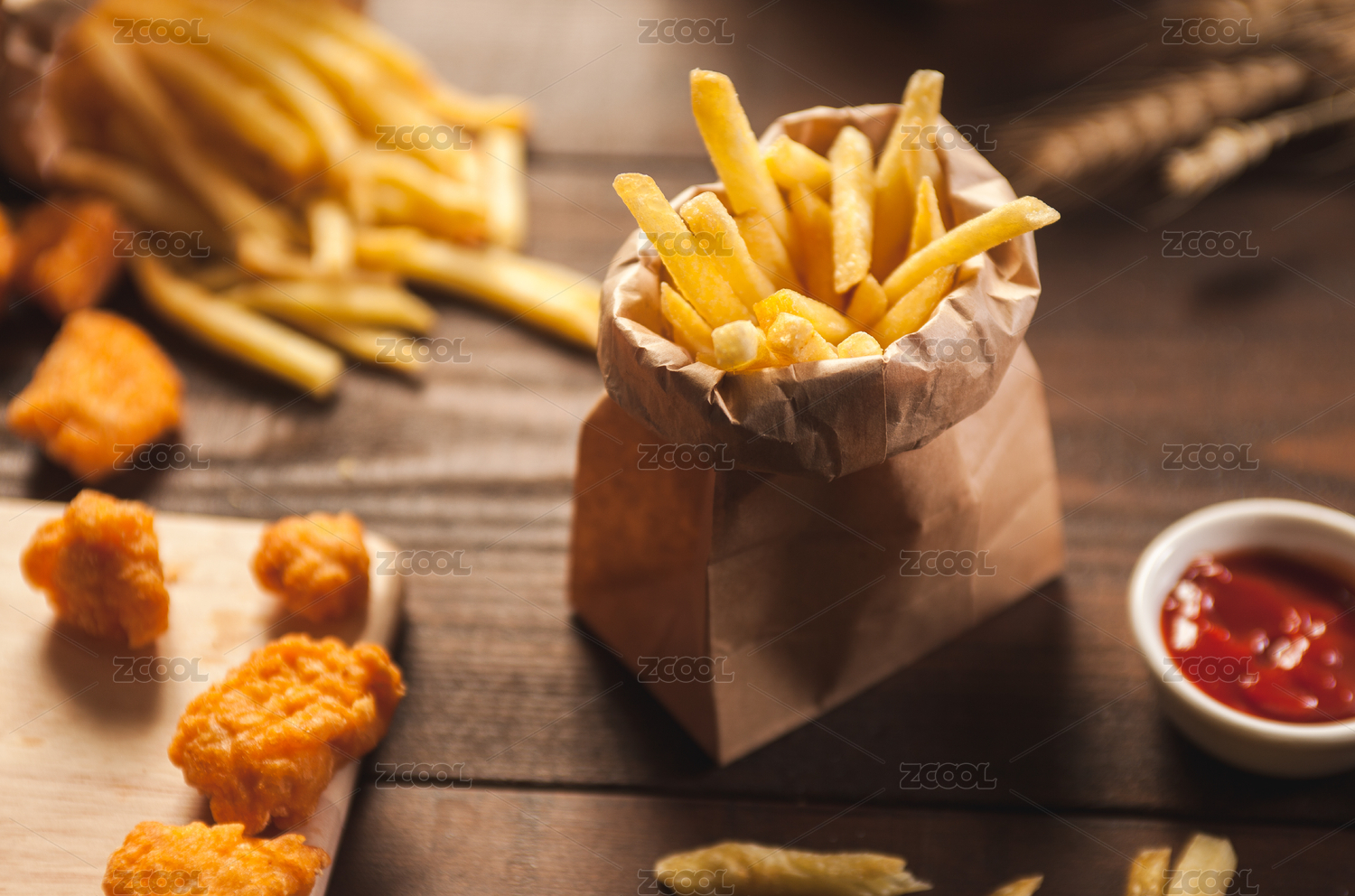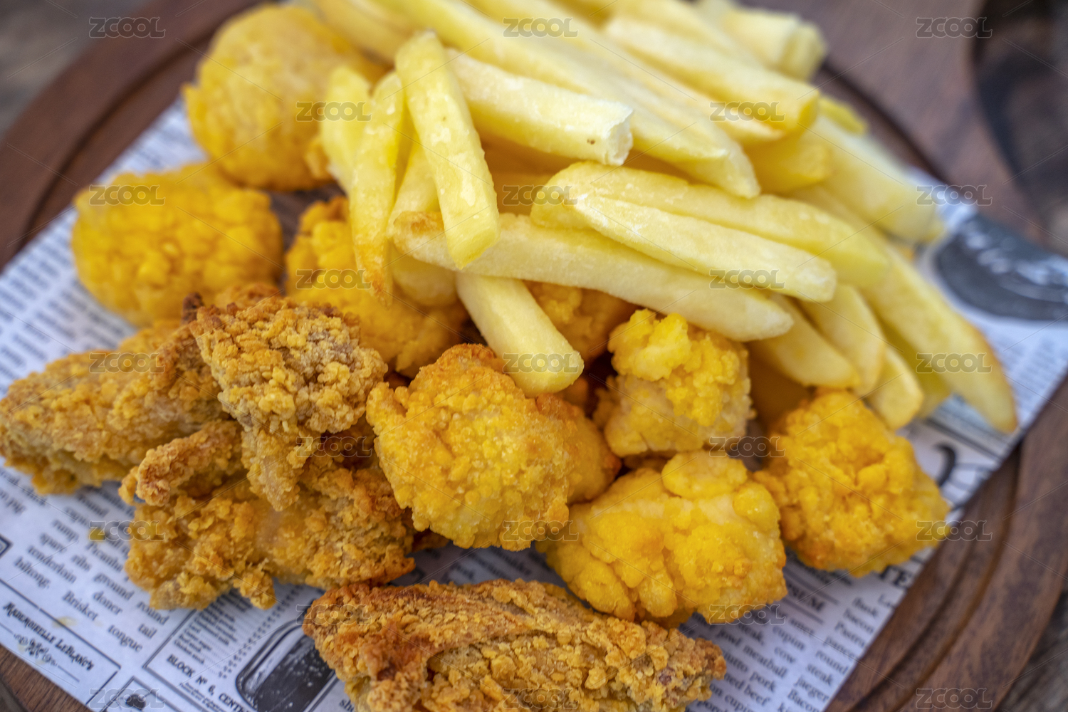 薯?xiàng)l與炸雞西式快餐小吃拼盤