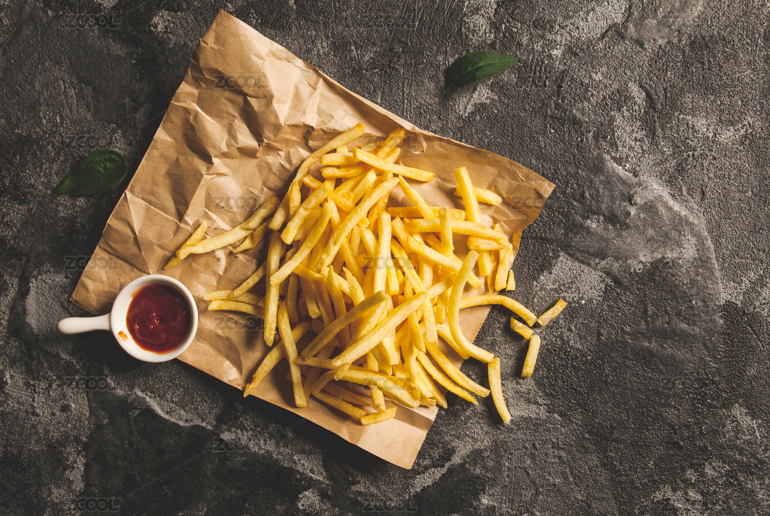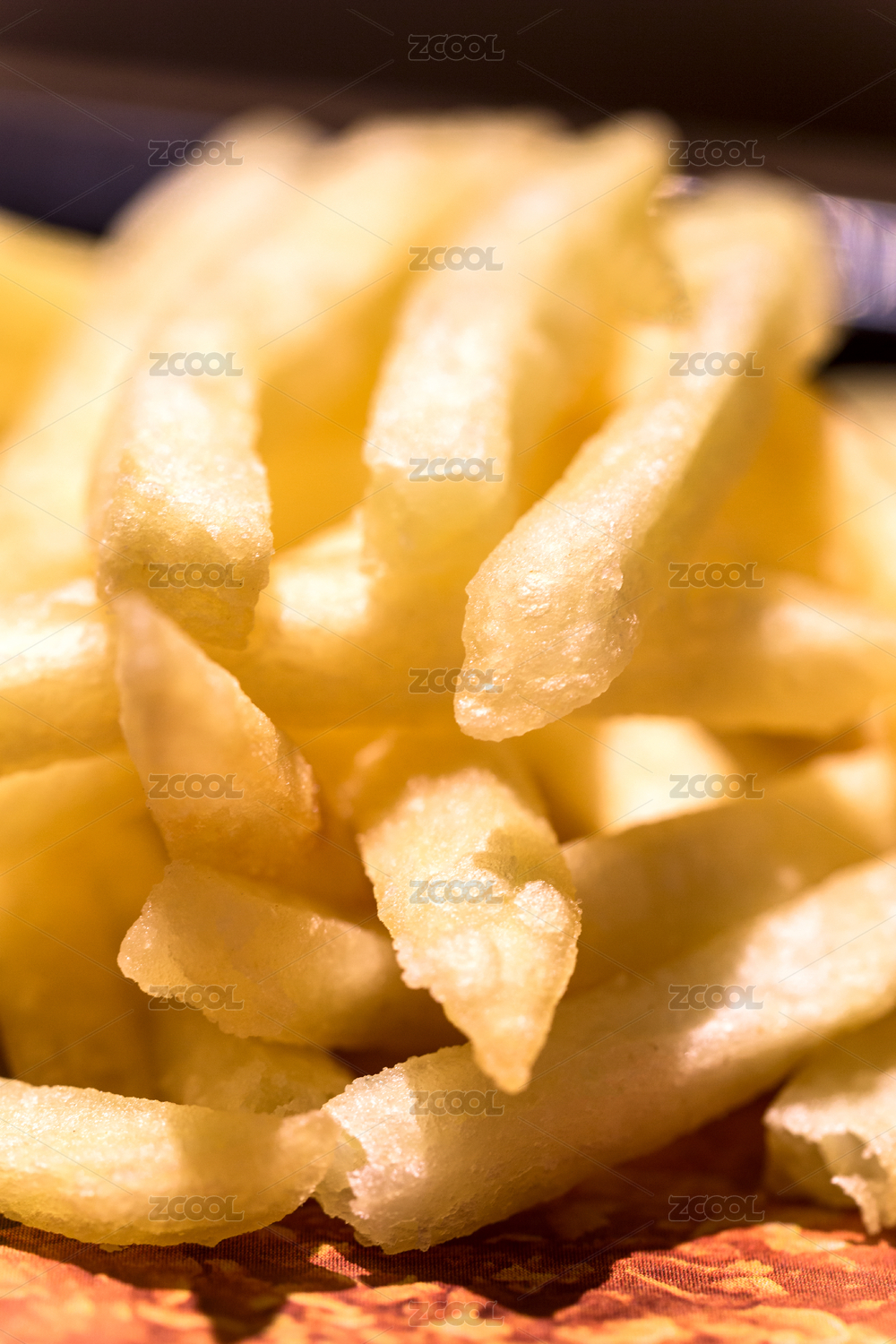 一個(gè)紙盒里裝著很多根炸好的薯?xiàng)l