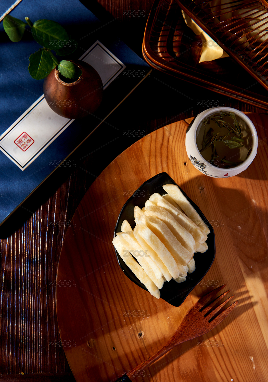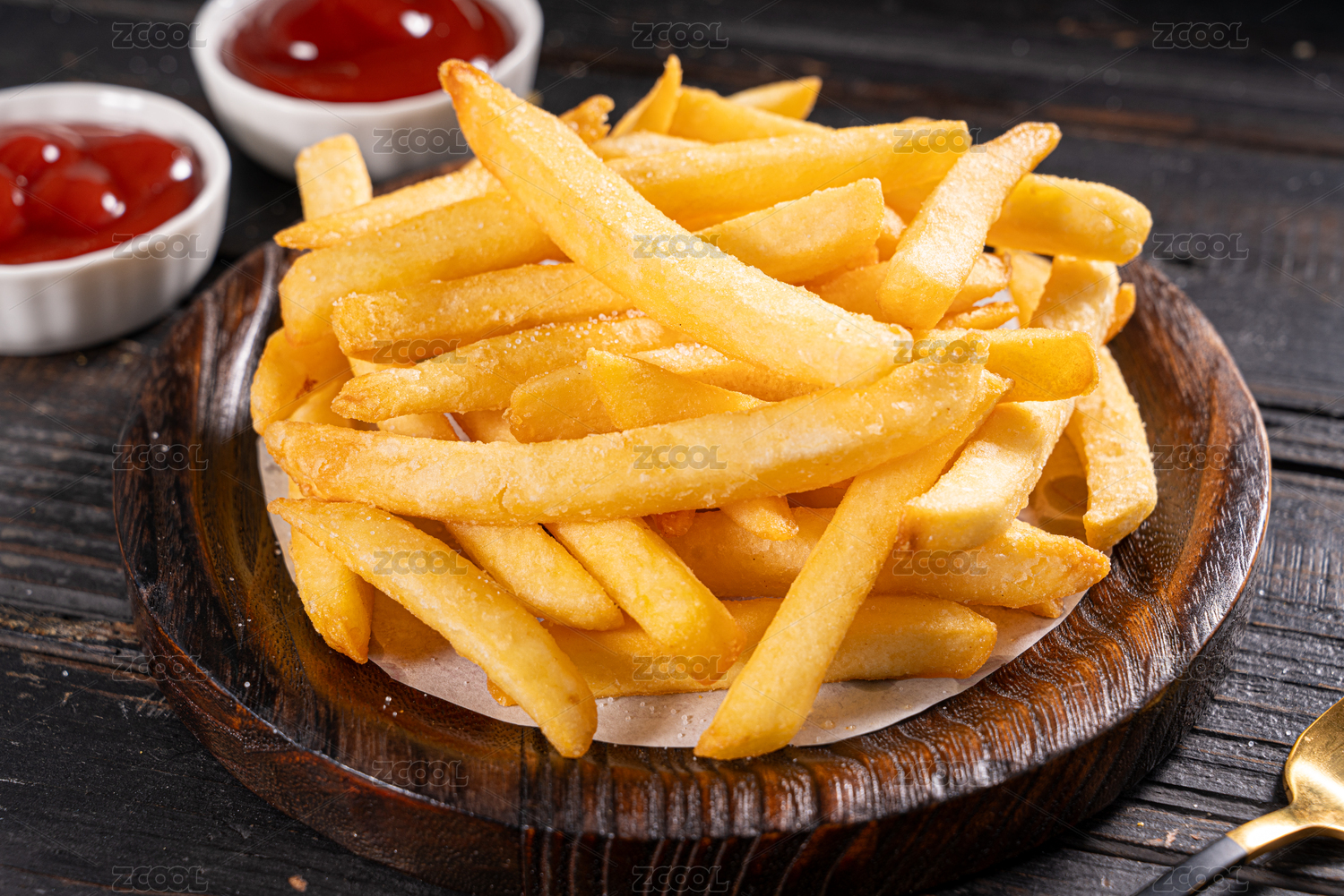 深色背景下黑色瓷碗里的薯?xiàng)l