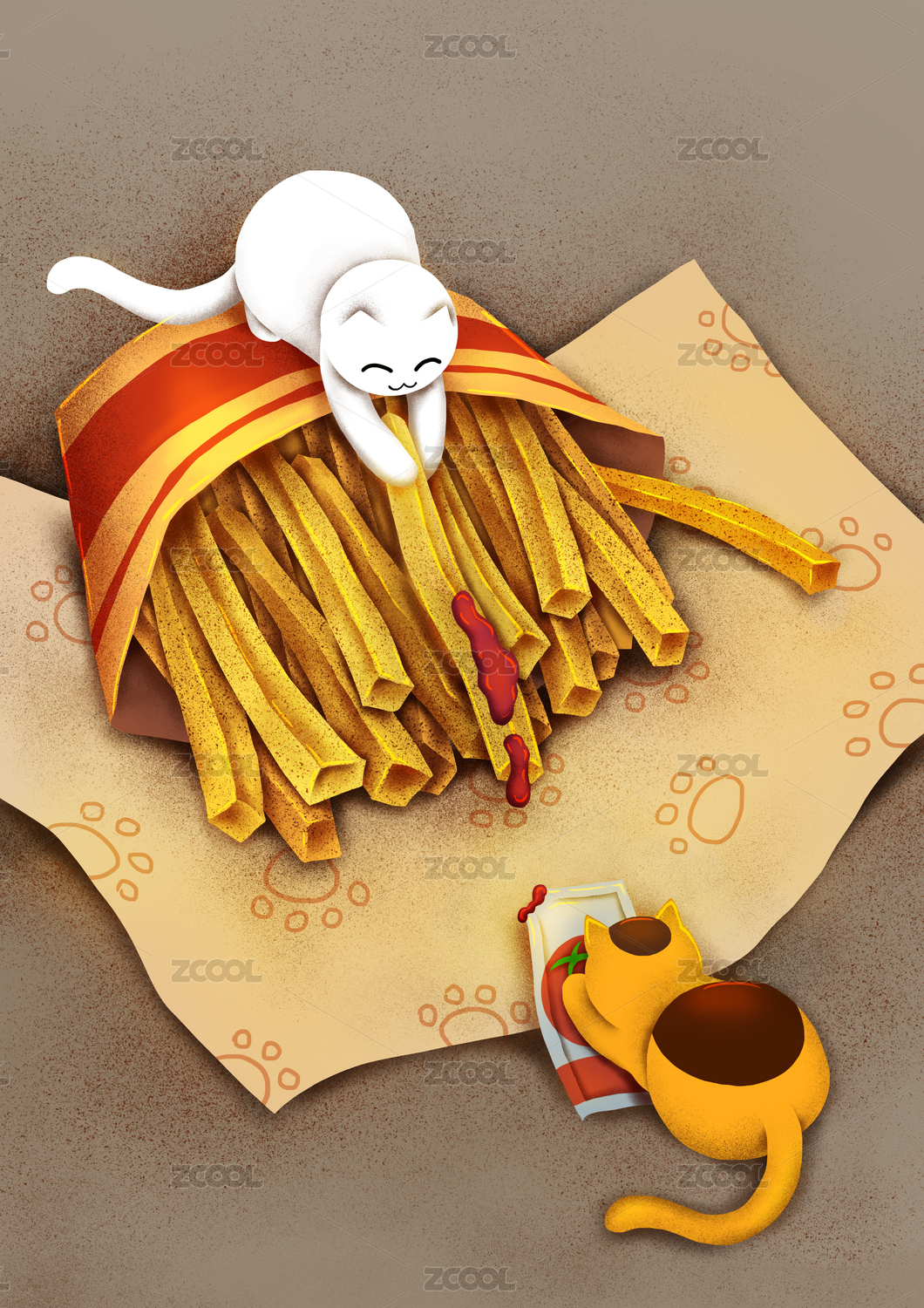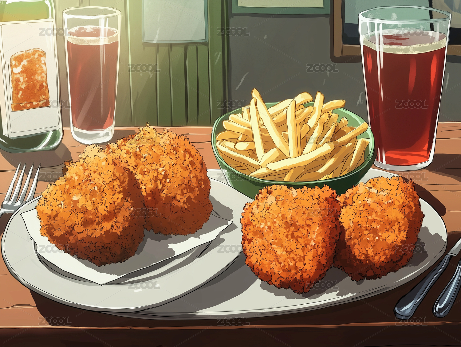 日漫風(fēng)格 炸丸子薯?xiàng)l可樂套餐