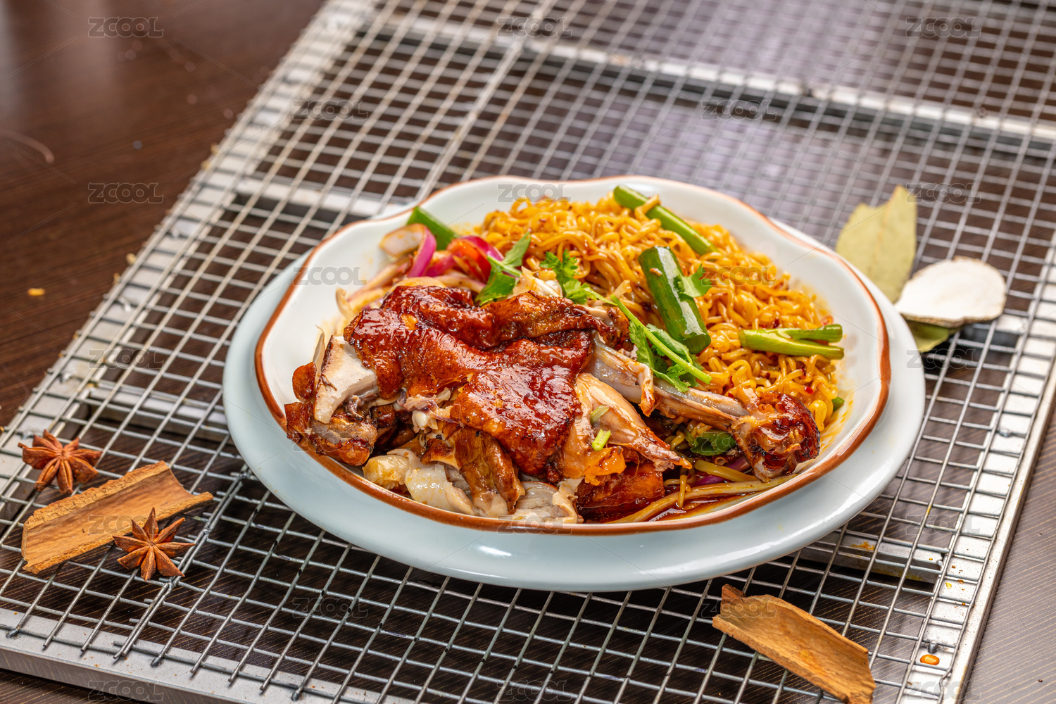 擺放在桌面的雞架拌面
