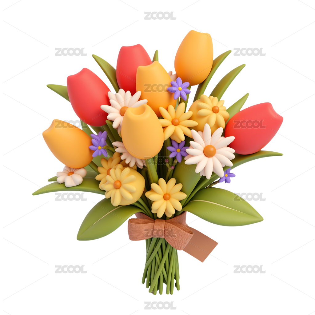 卡通郁金香絨球捧花