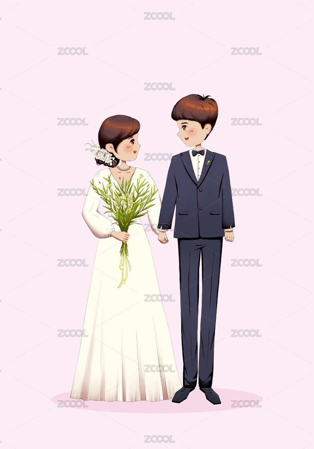 穿禮服拿捧花的情侶插畫(huà) 漫畫(huà)人物