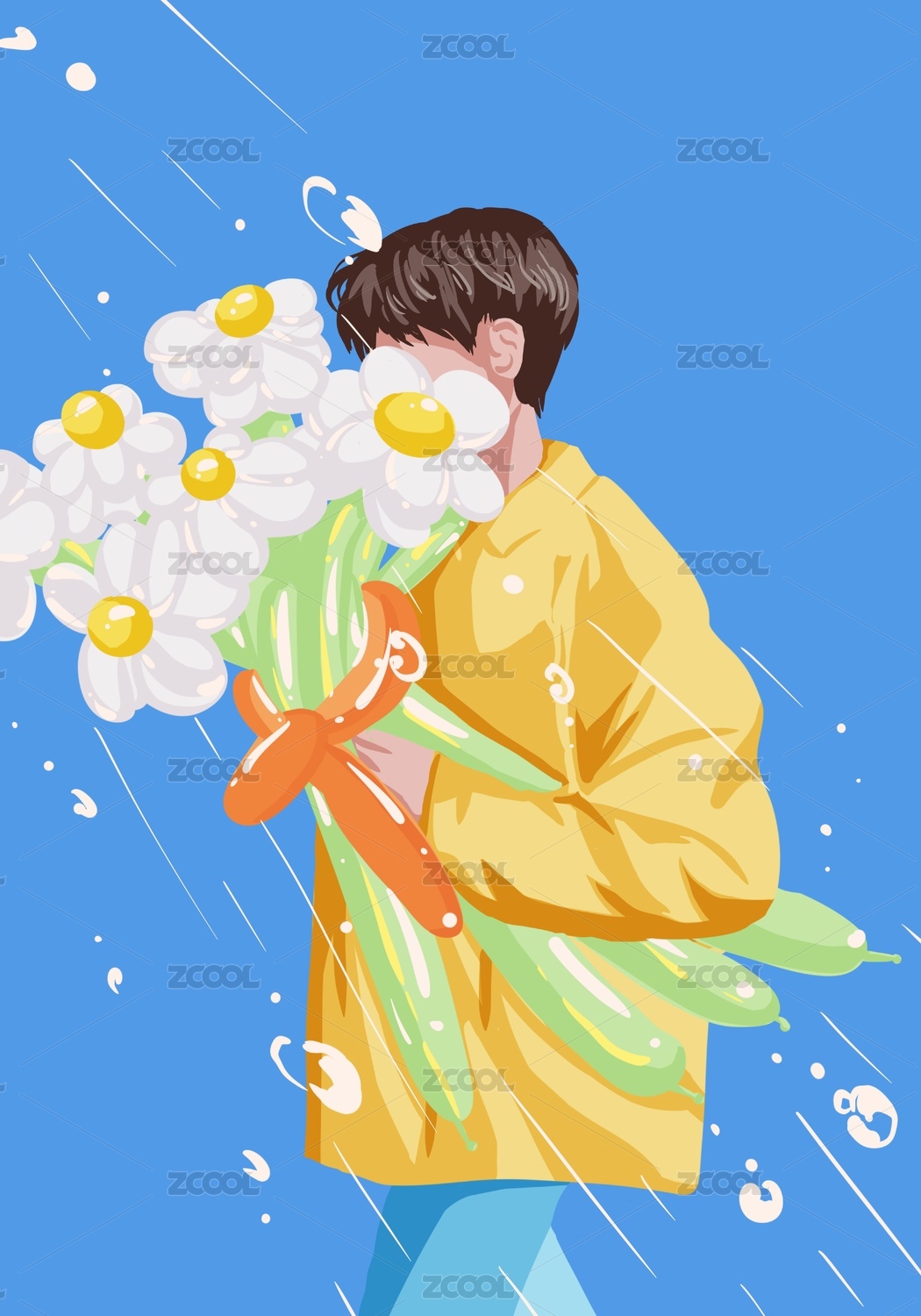 春天捧花的男生