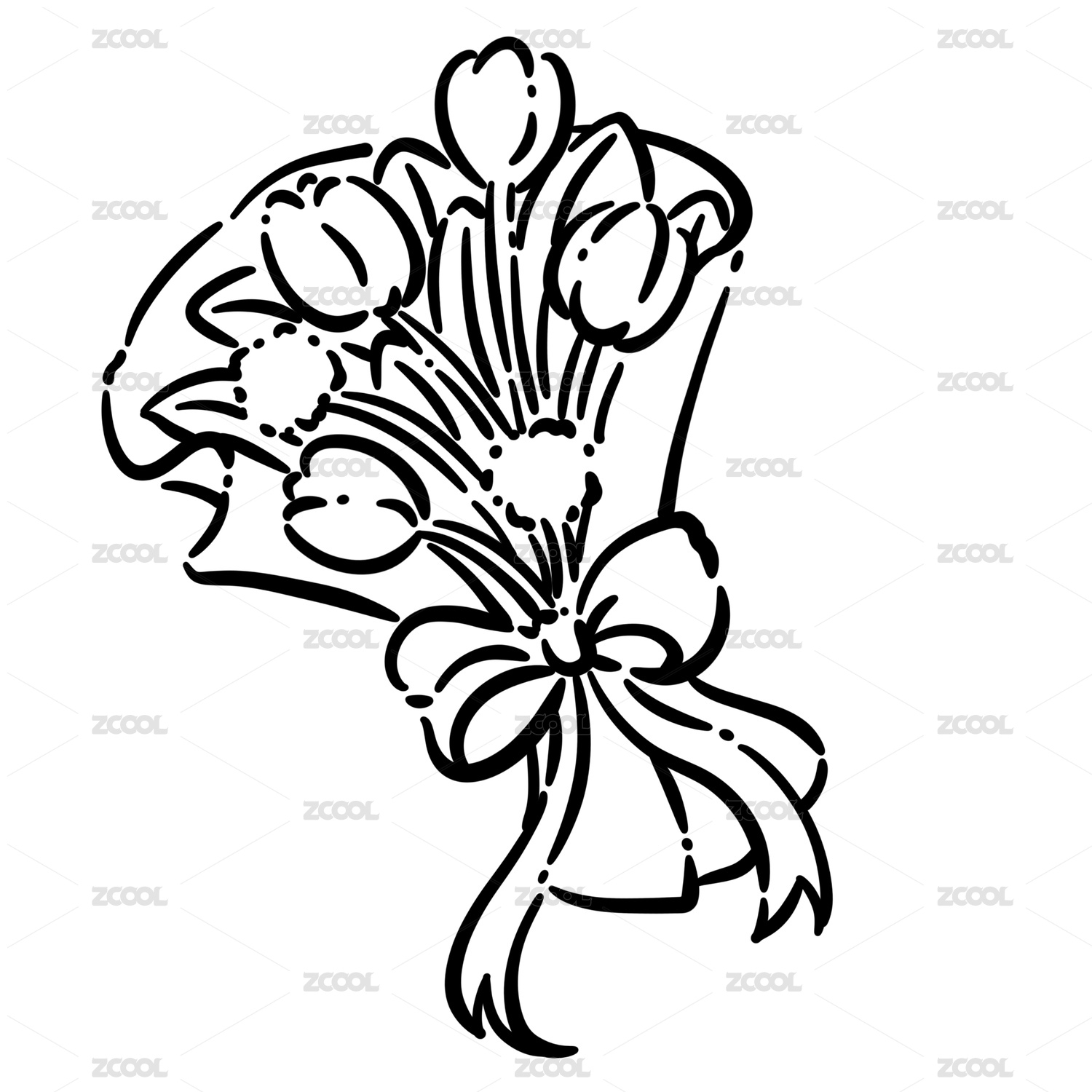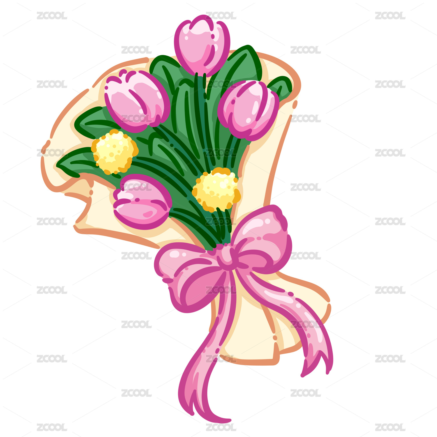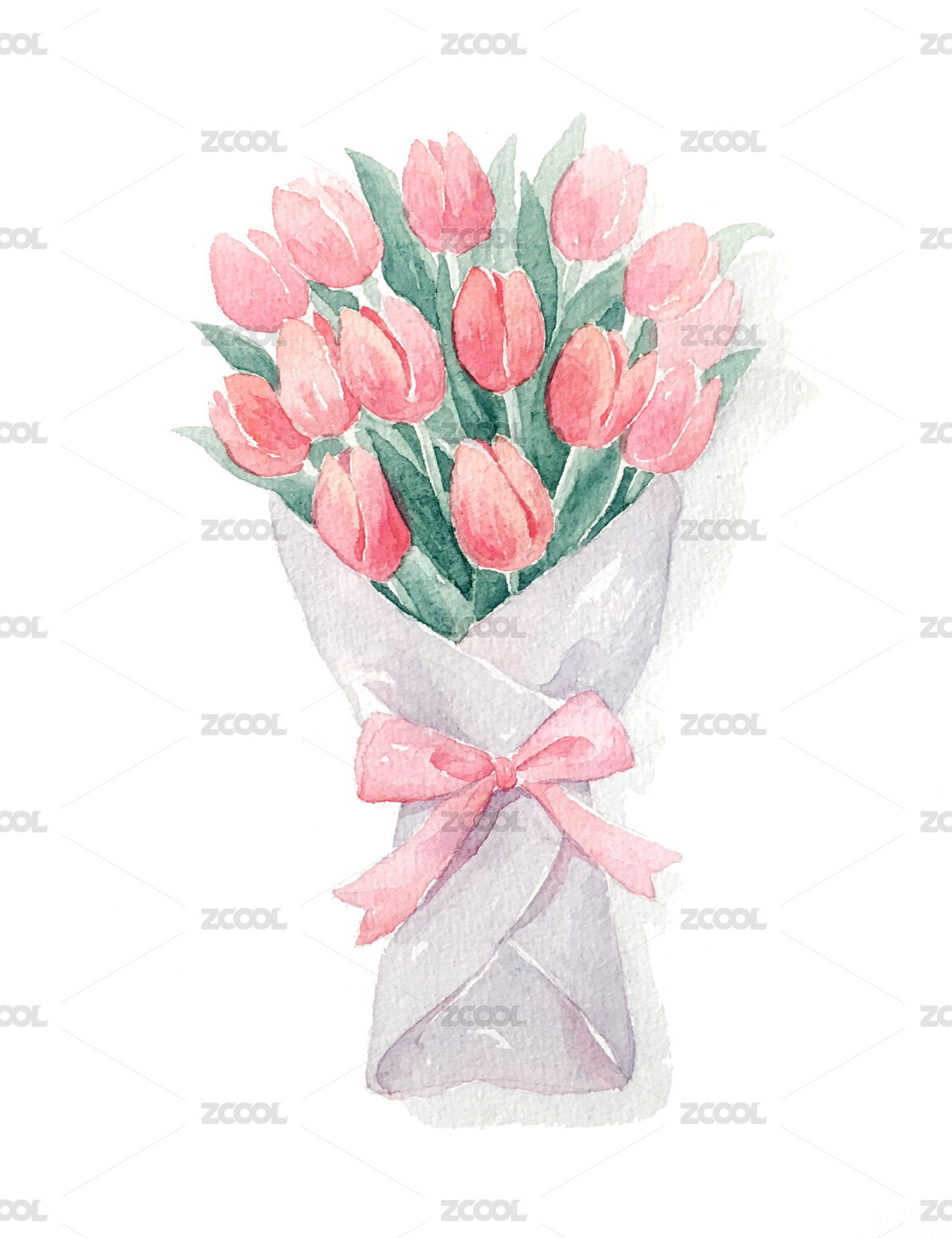 情人節(jié)捧花玫瑰郁金香絲帶水彩手繪插畫(huà)