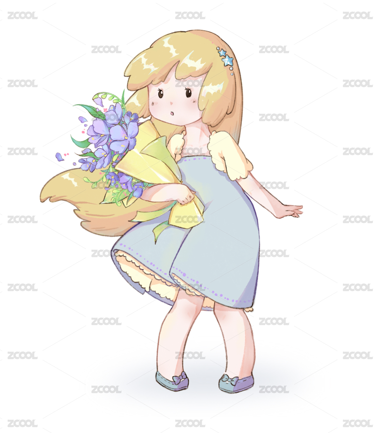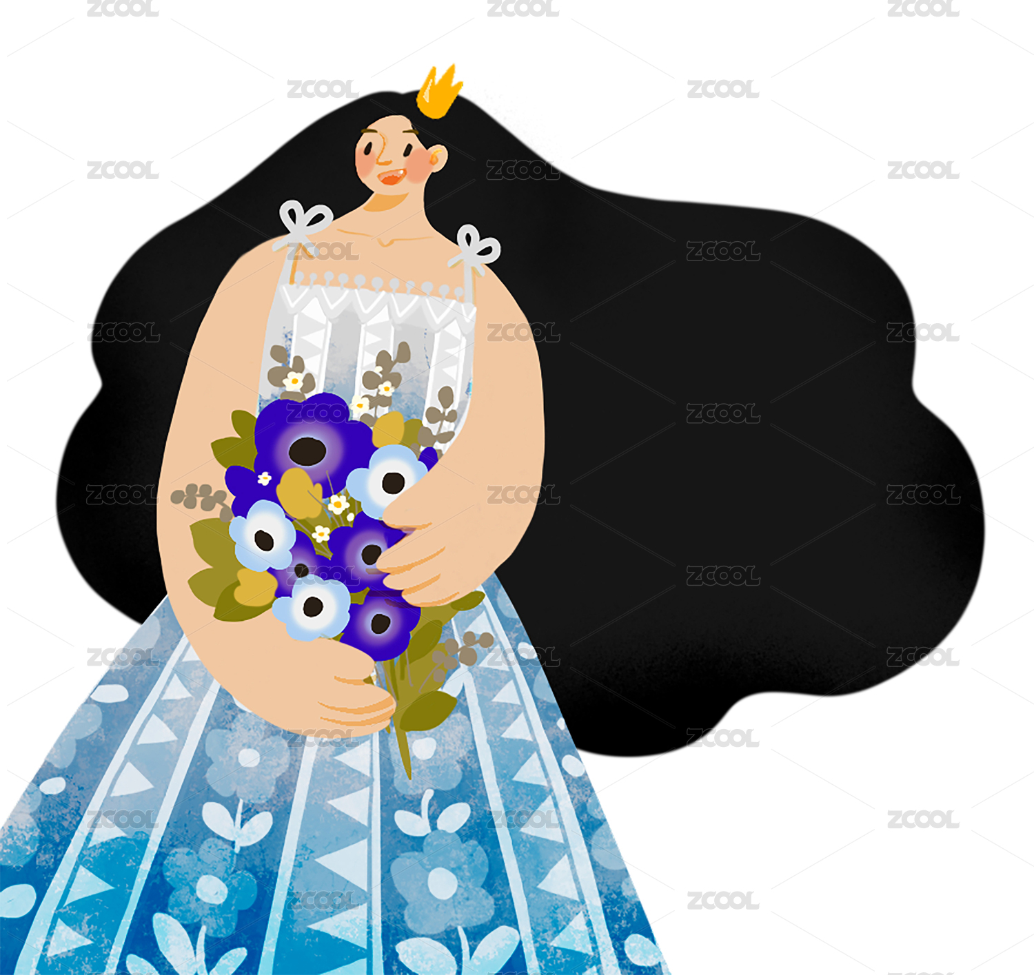 穿藍(lán)色花裙子帶皇冠的捧花少女