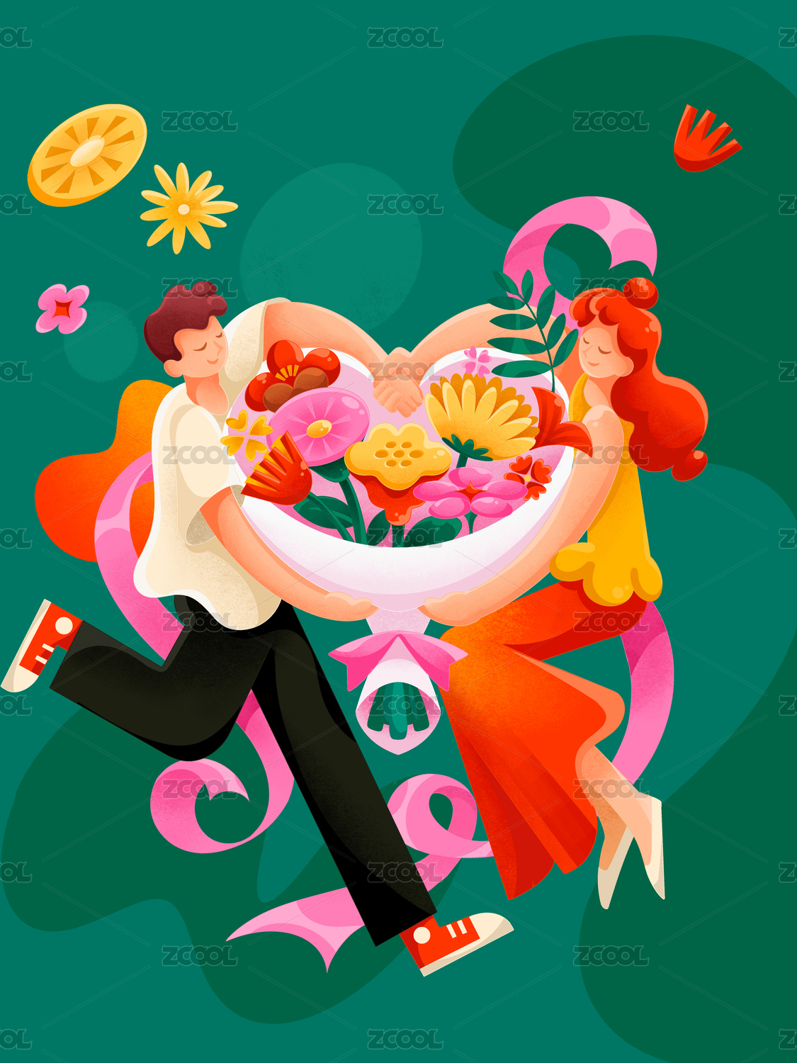 情人節(jié)捧花創(chuàng)意插畫(huà)