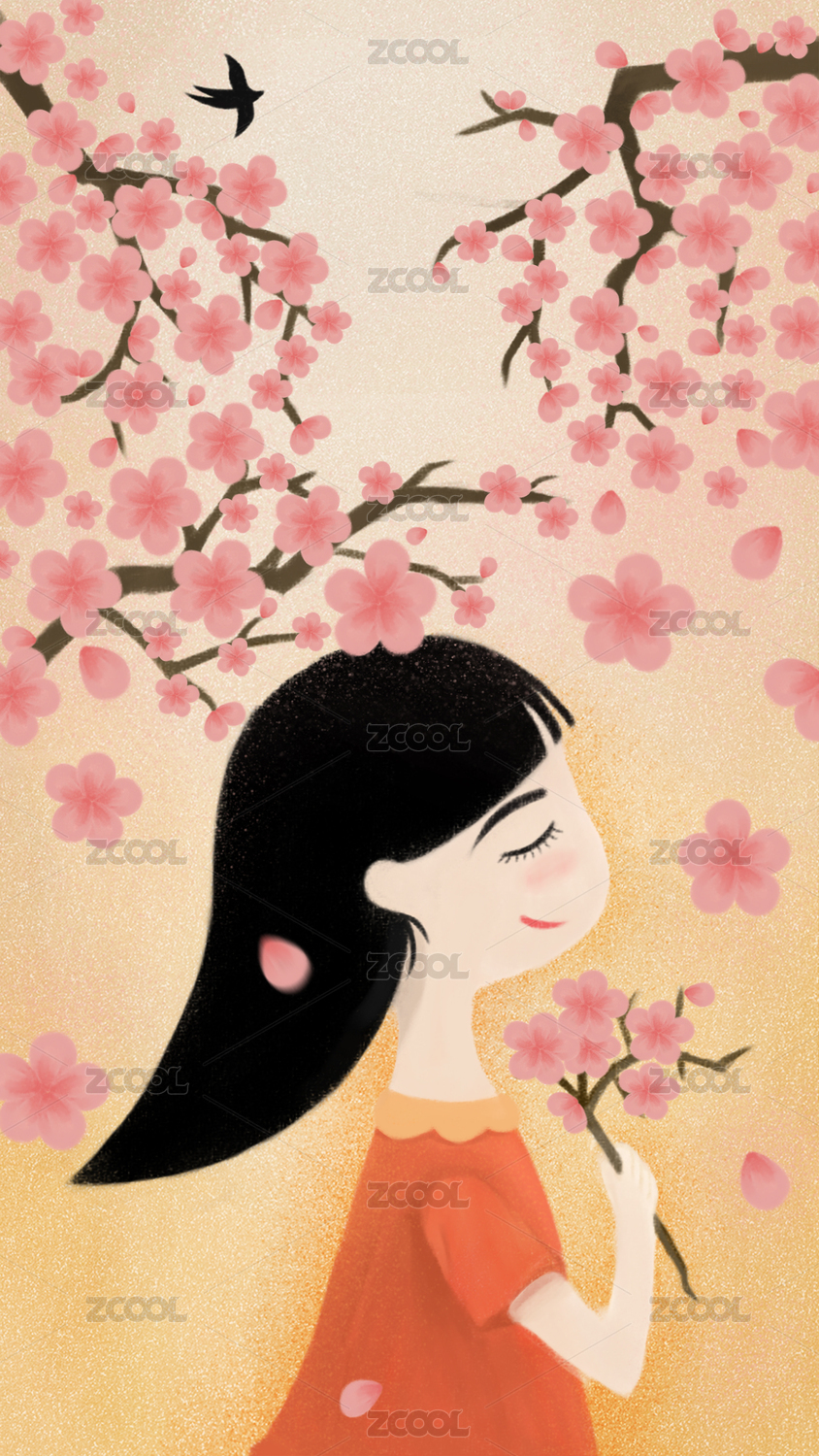 春天女孩桃花櫻花捧花