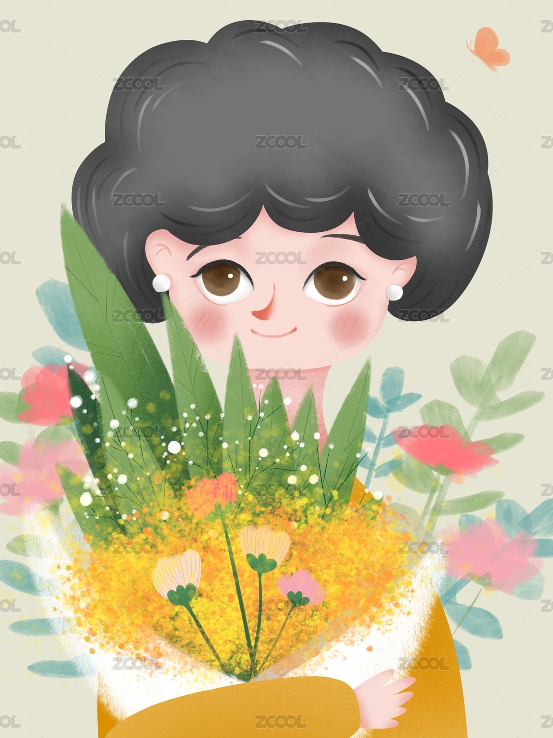 插畫(huà)手捧花元素
