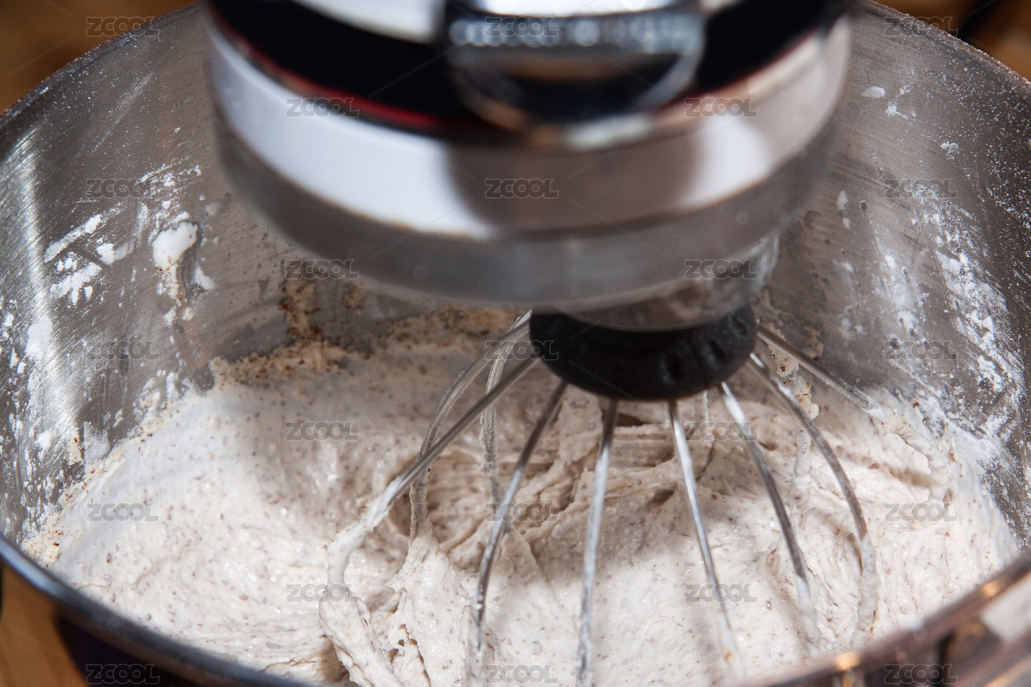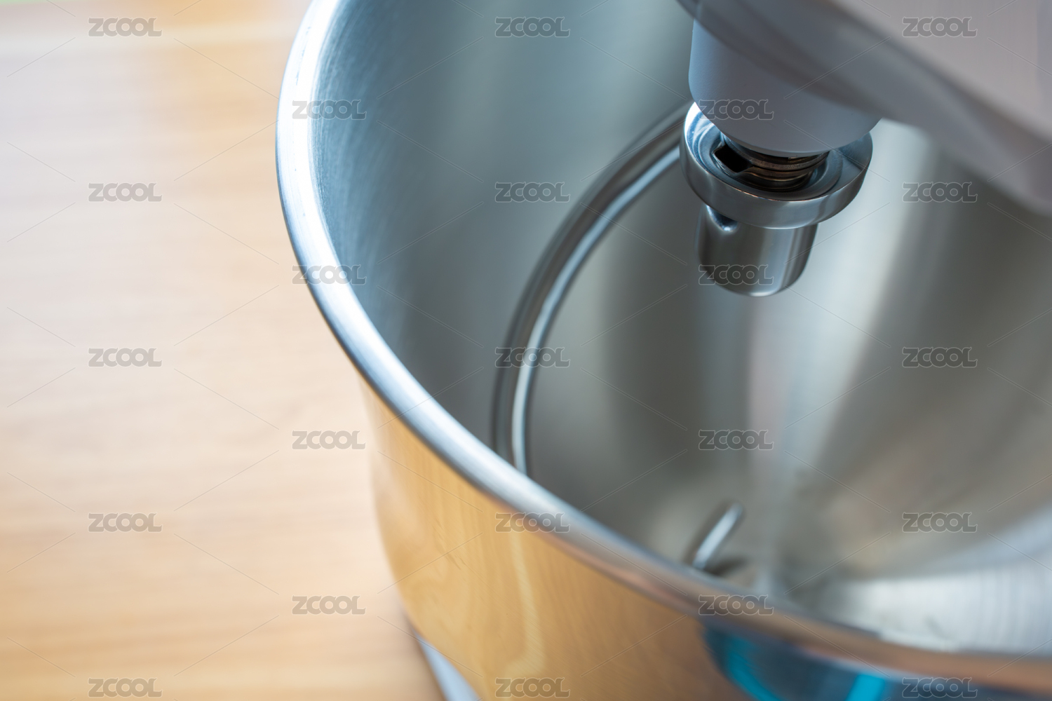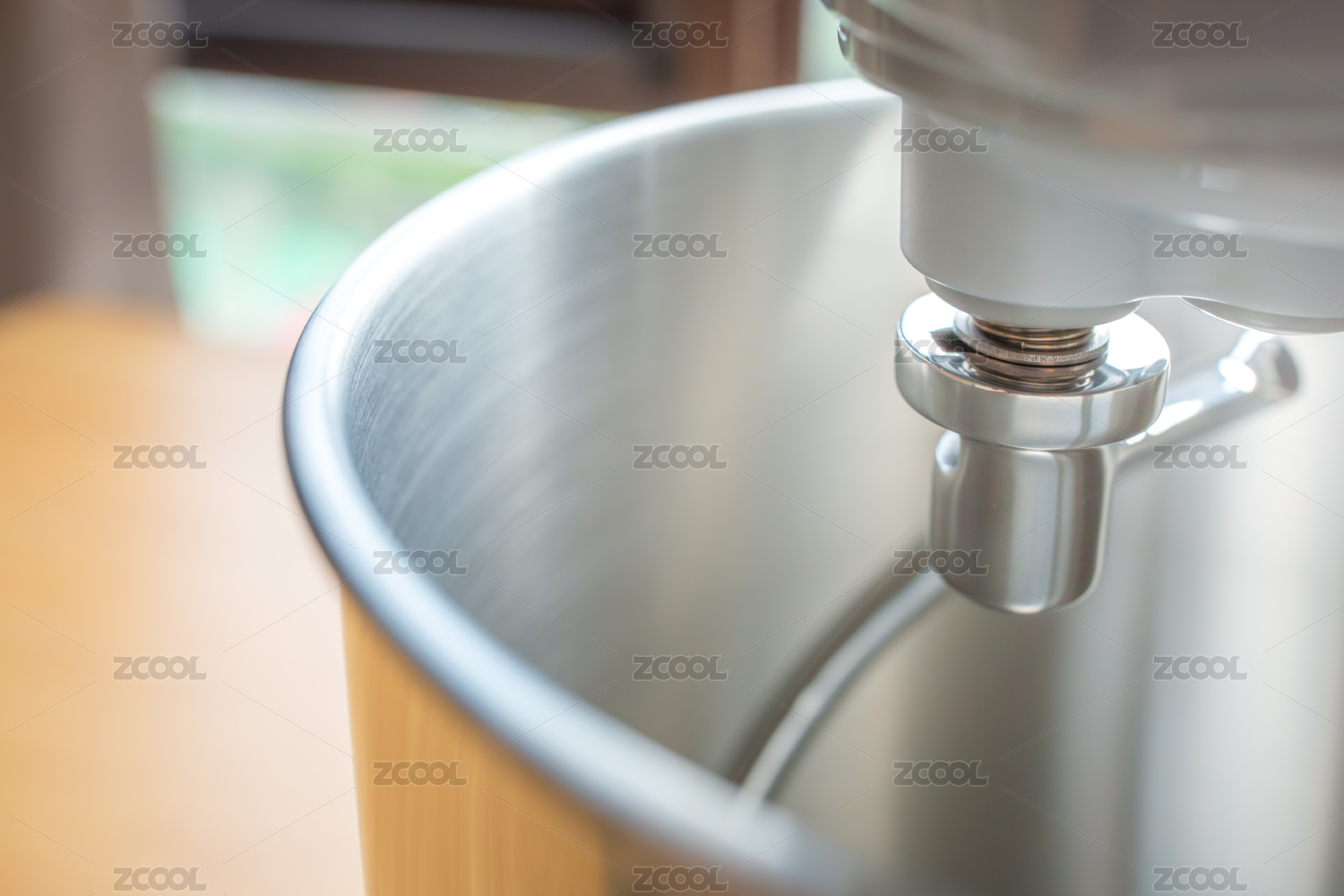 攪拌機(jī)的金屬攪拌碗和攪拌頭特寫