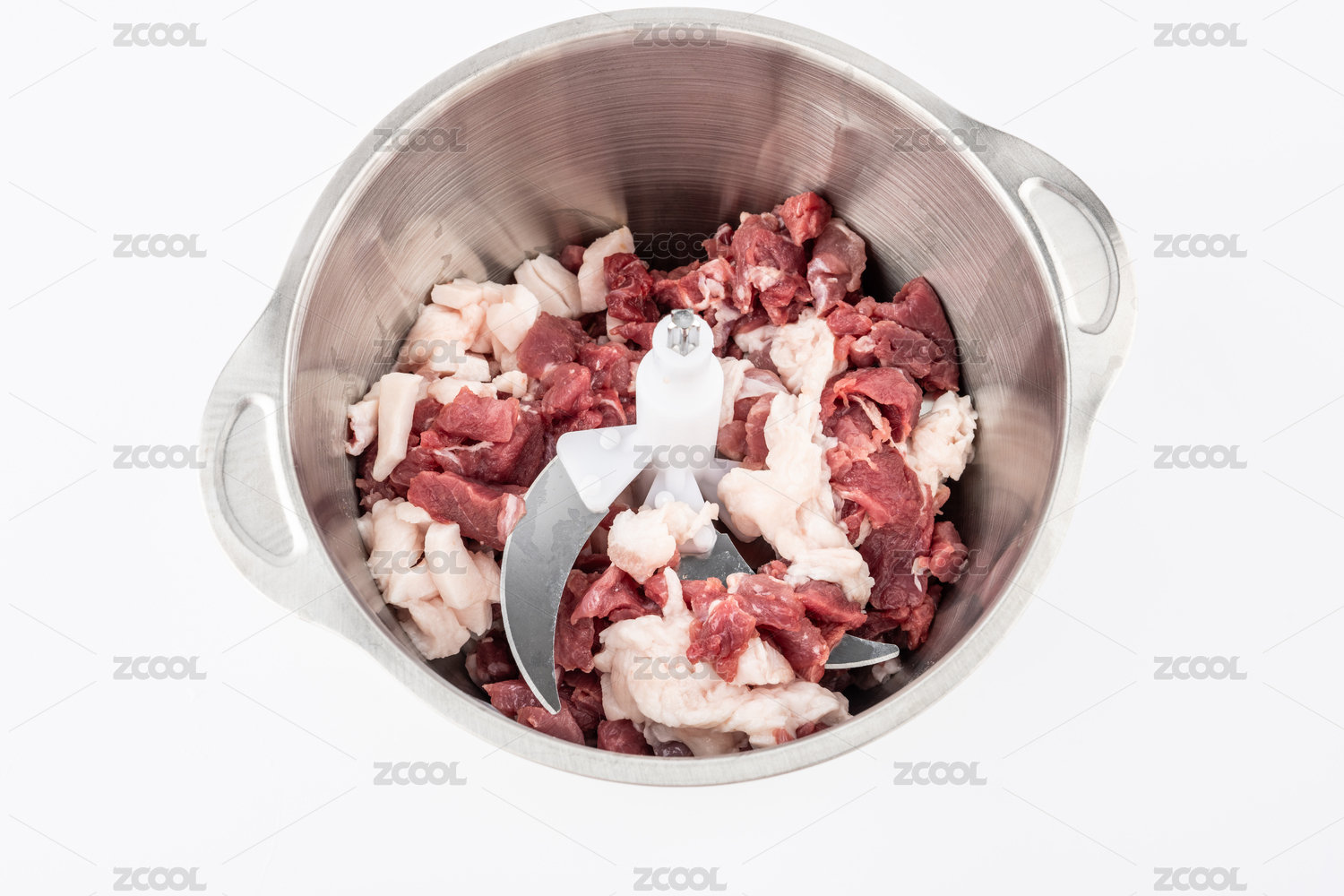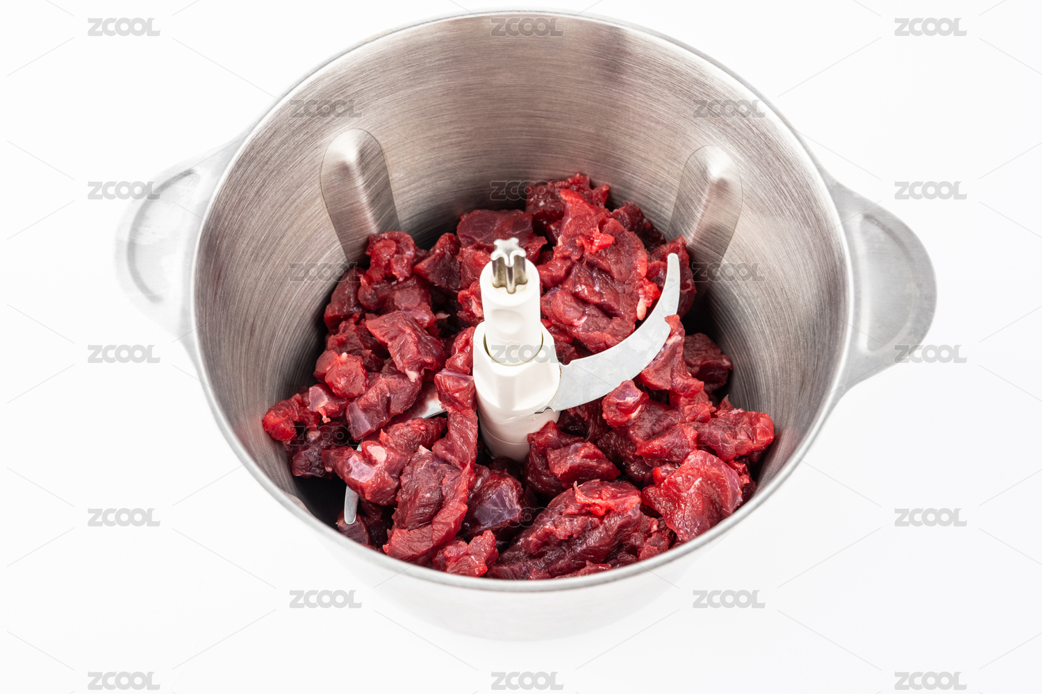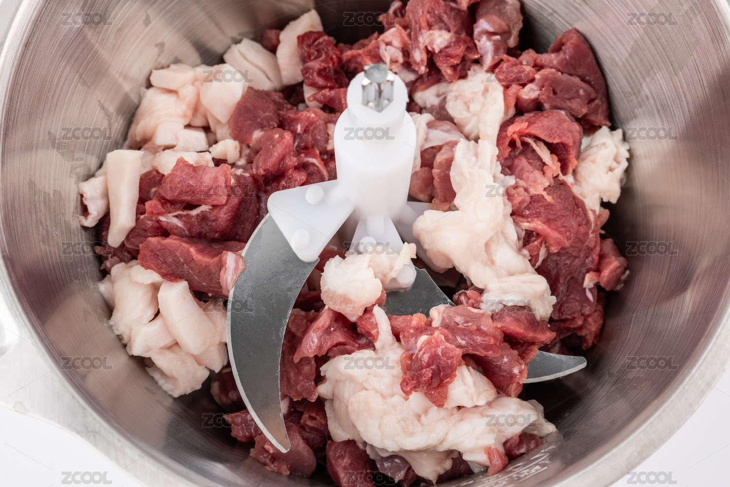 攪拌機(jī)里的新鮮牛肉塊