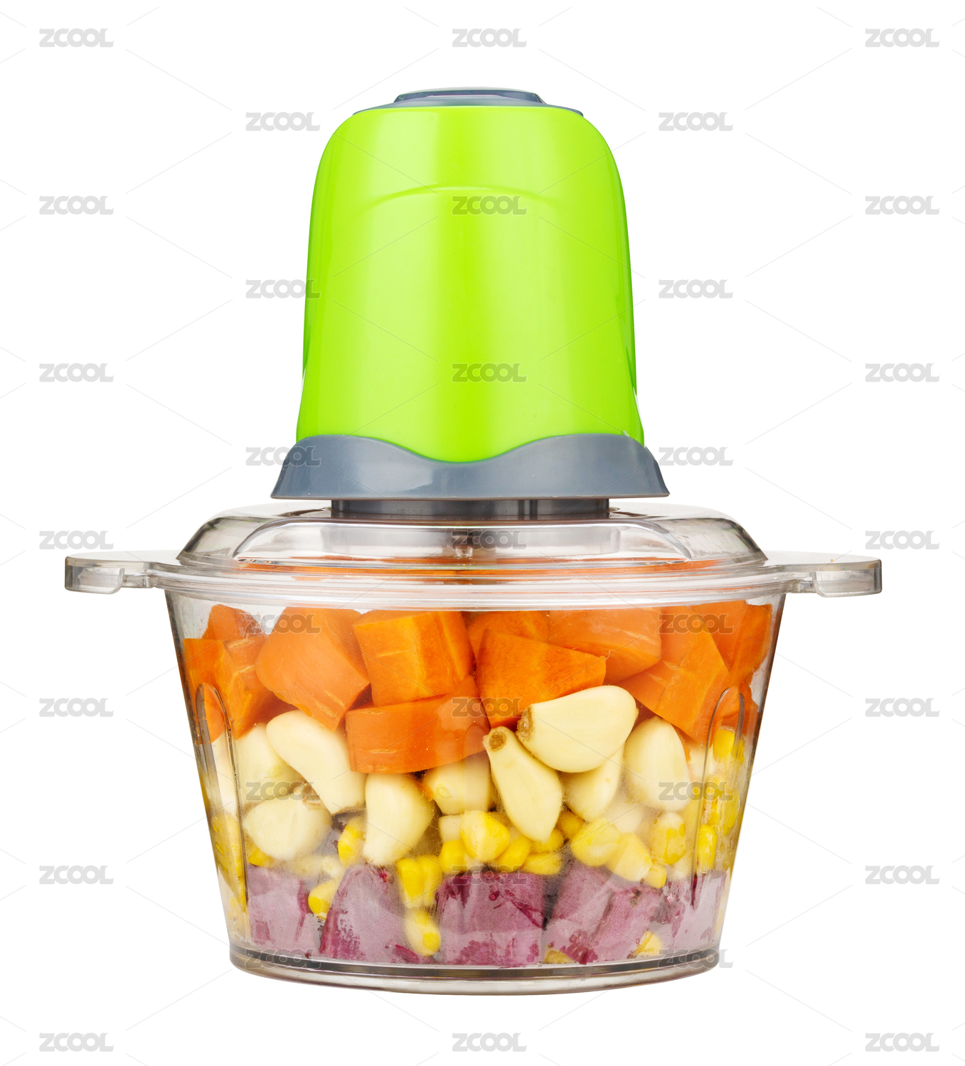 裝了各種蔬菜的打餡碎菜攪拌機(jī)白底圖
