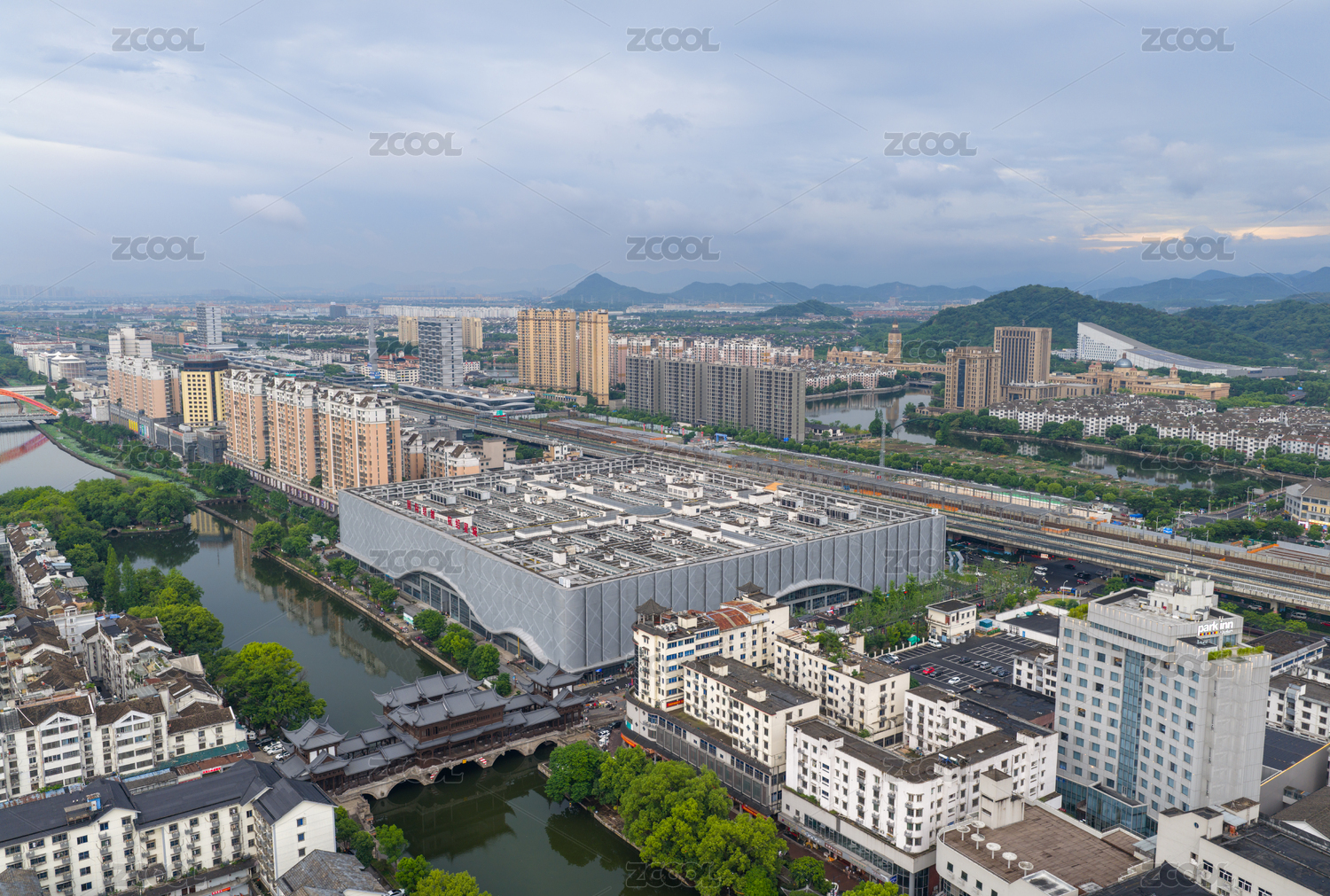 航拍浙江紹興柯橋輕紡城紡織品批發(fā)市場