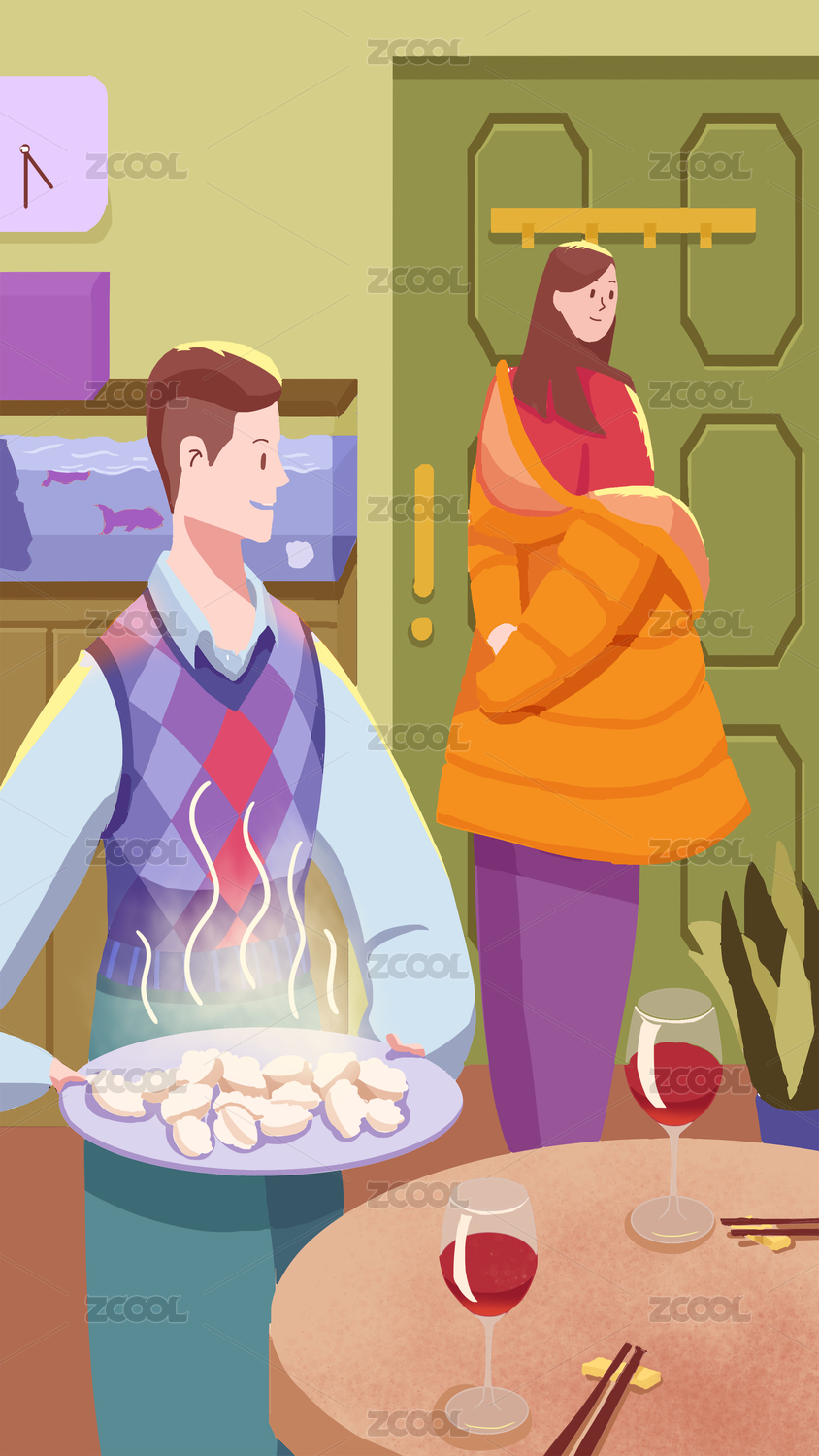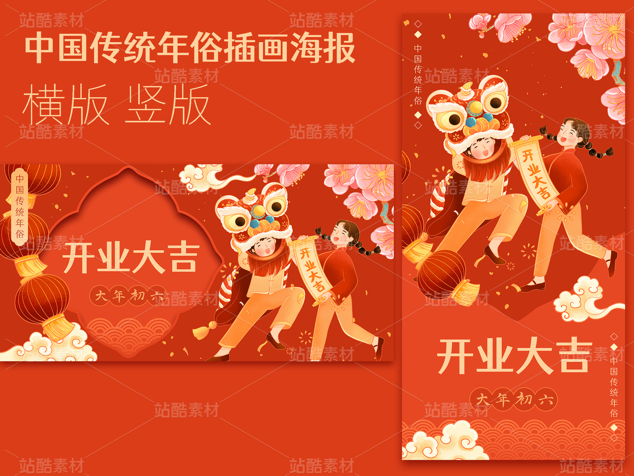 中國傳統(tǒng)年俗大年初六開業(yè)大吉插畫