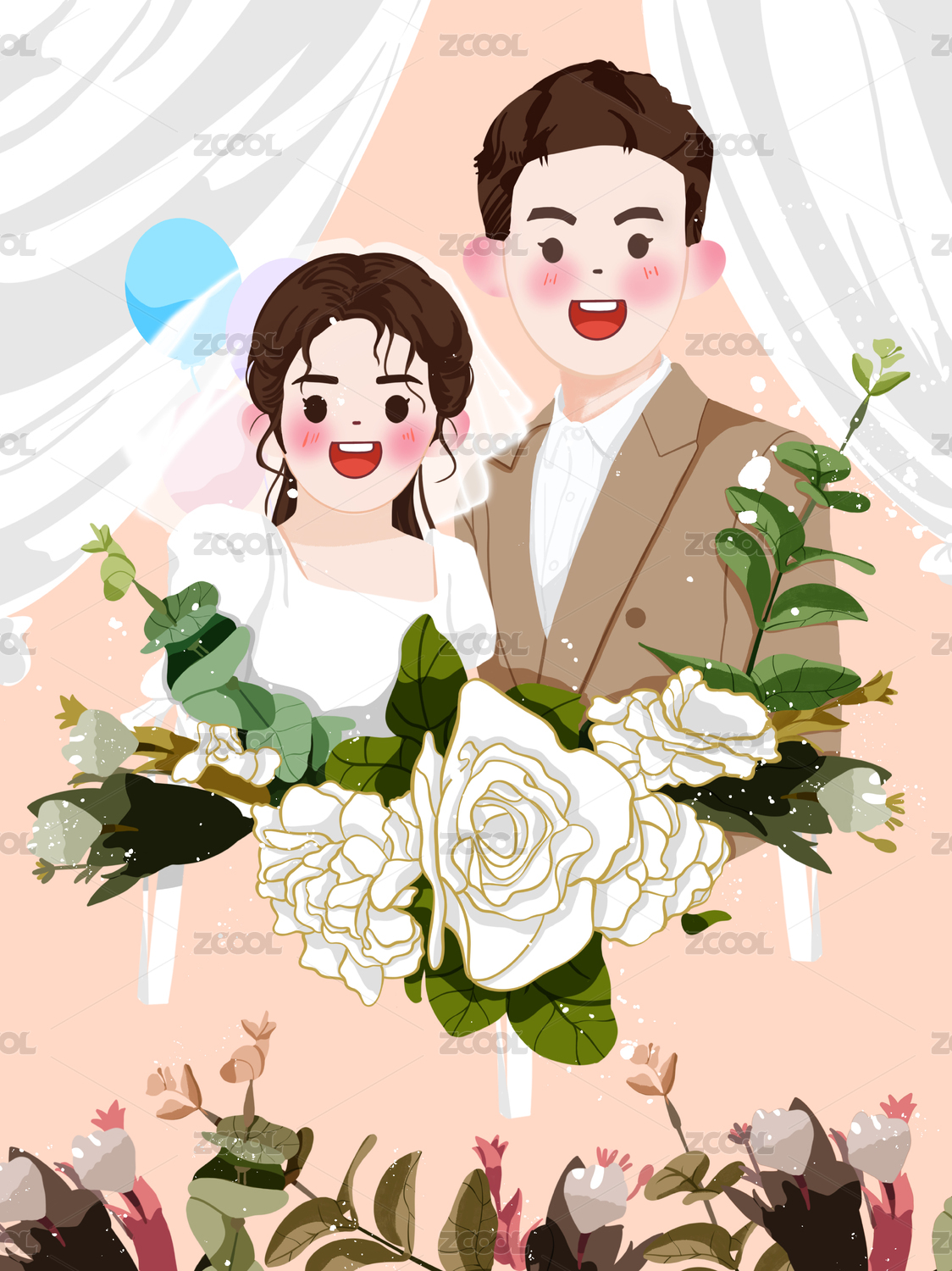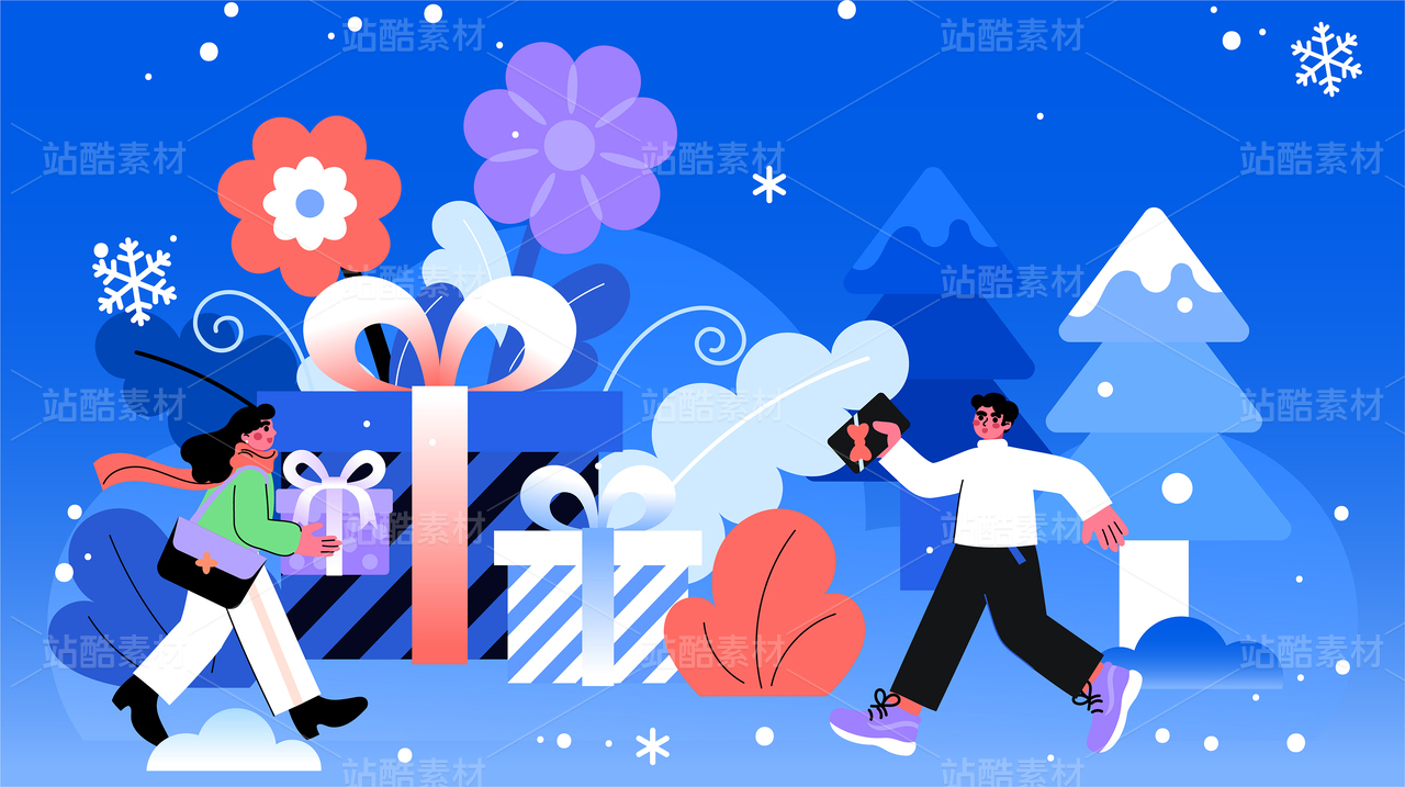 冬季花朵樹木雪花兩個人禮物節(jié)日促銷矢量插畫