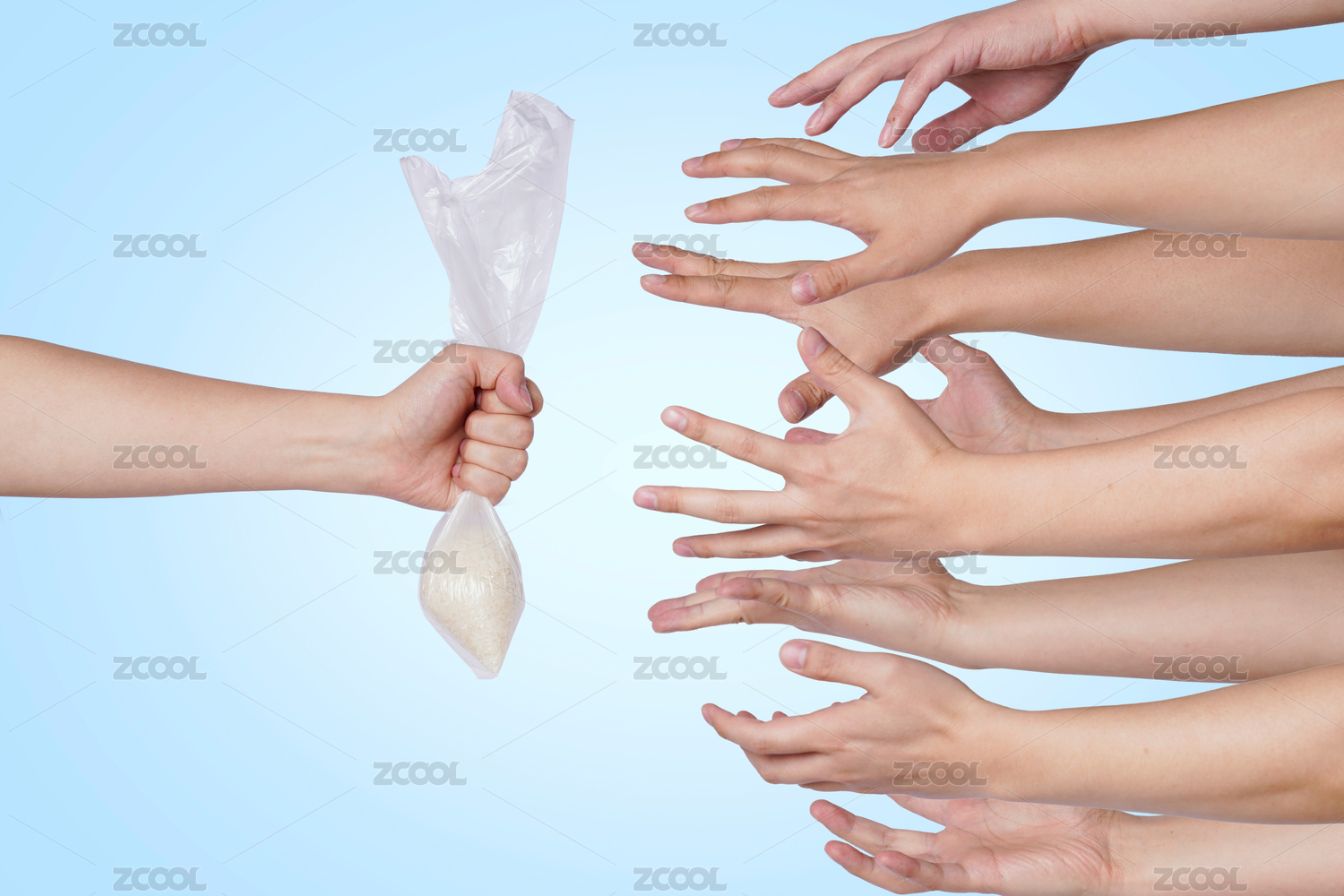 許多只爭搶的手