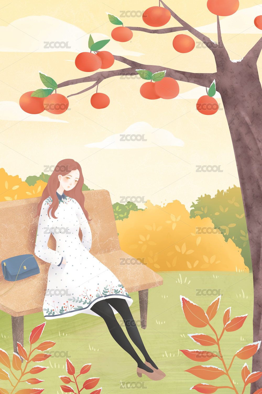 清新文藝秋季人物插畫
