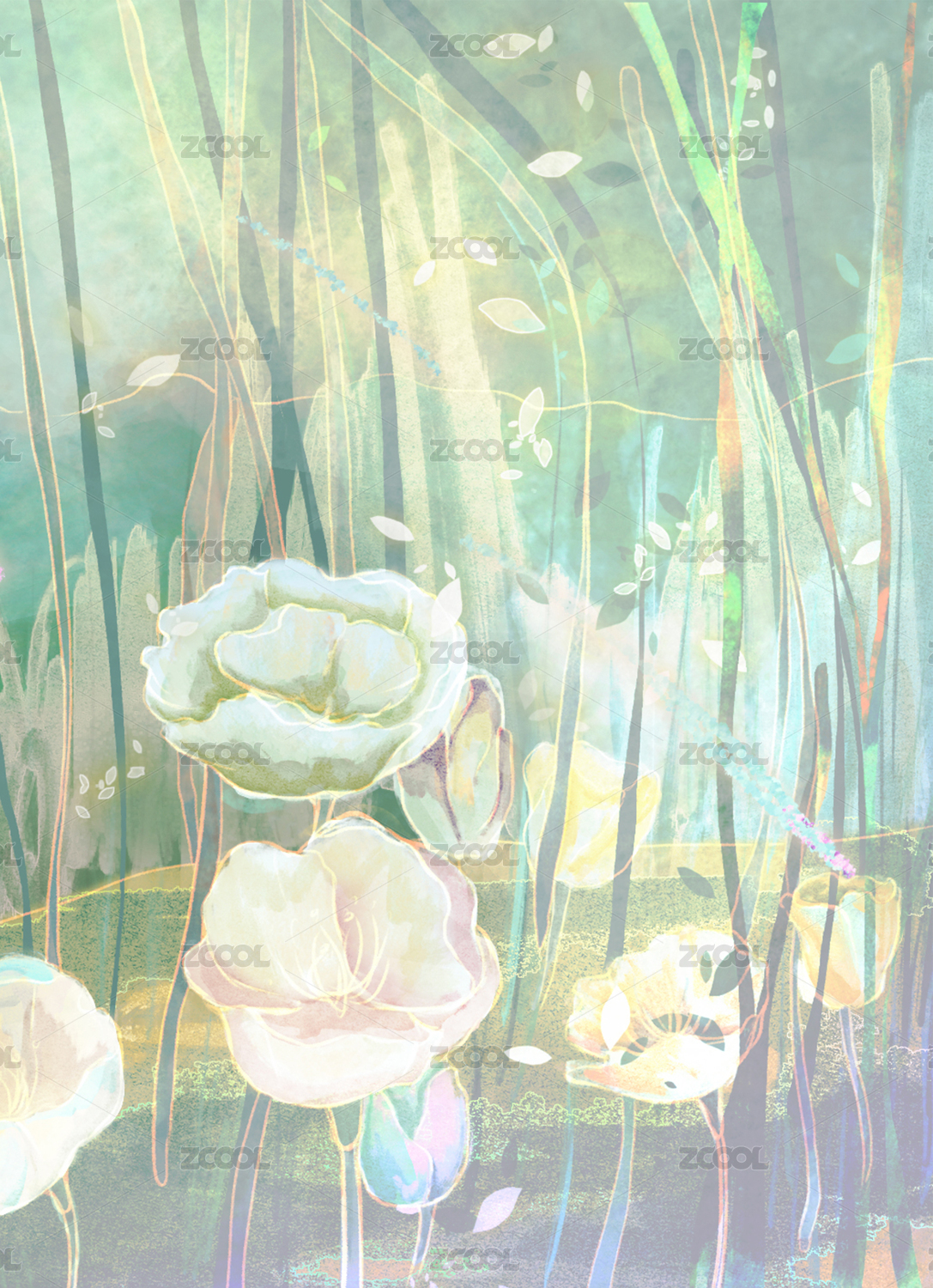 唯美文藝向日葵手繪插畫背景