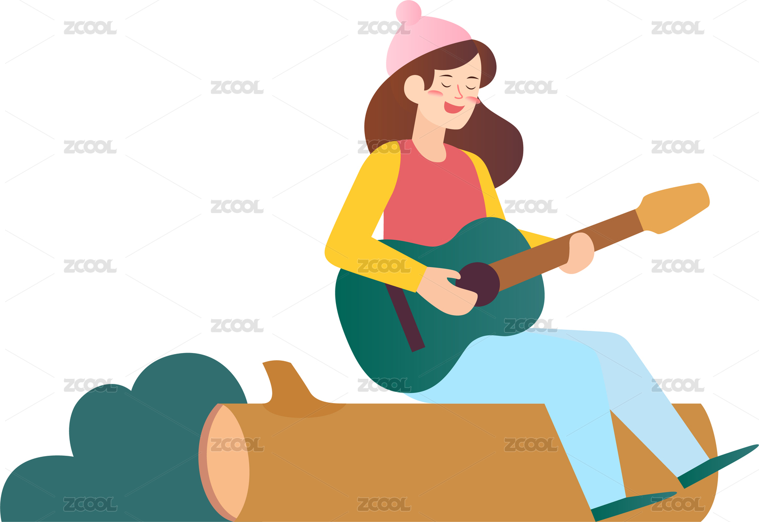 彈吉他的女孩文藝插畫元素