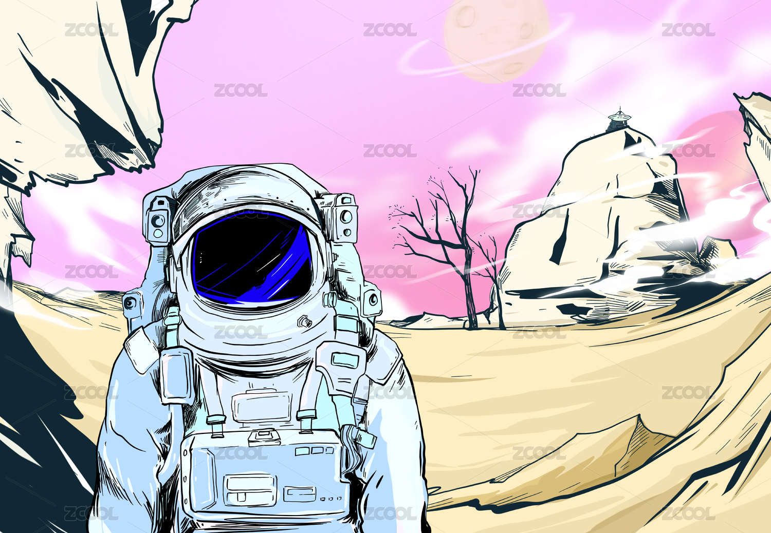 文藝風格手繪插畫未來宇宙太空宇航員