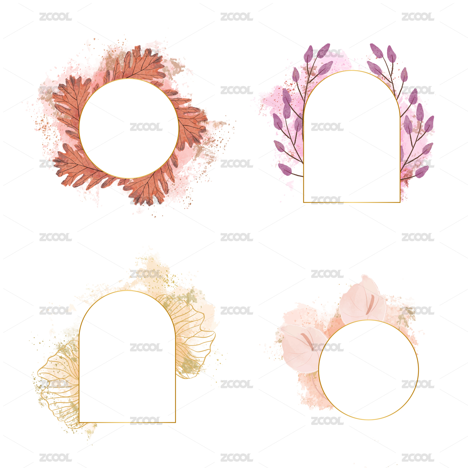 文藝清新紋理插畫標簽葉子花紋邊框
