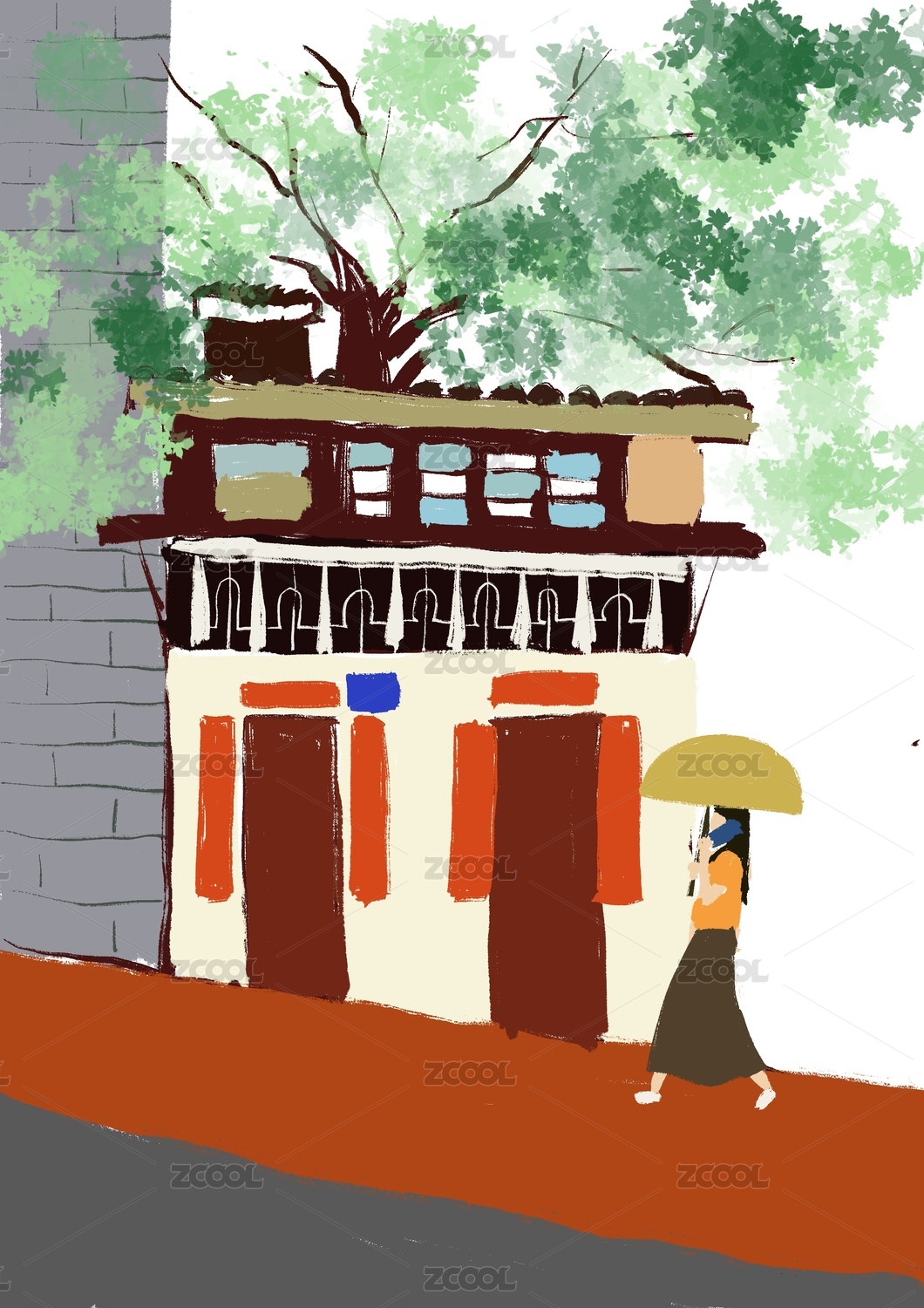 老街喜慶文藝插畫