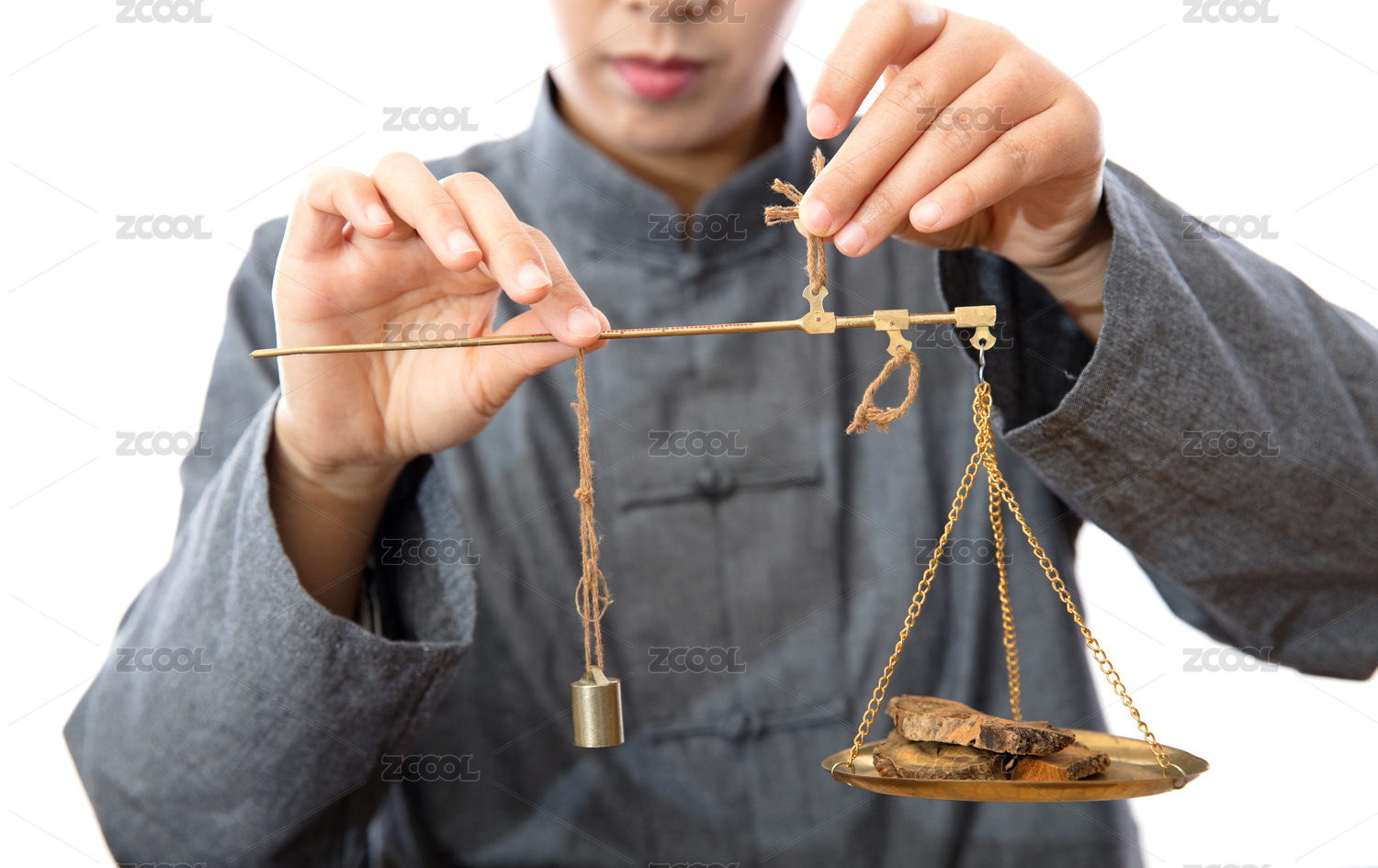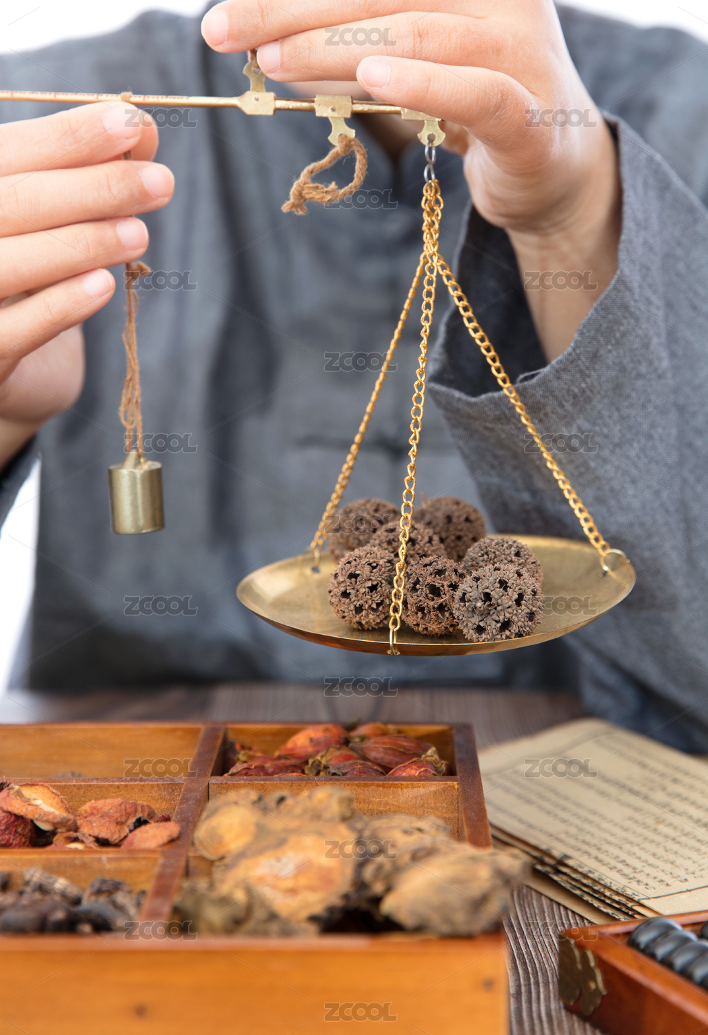正在稱重草藥的中醫(yī)大夫