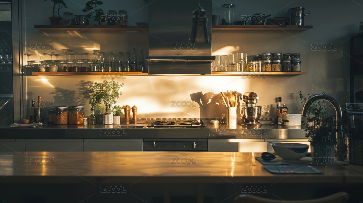 現(xiàn)代室內(nèi)的開(kāi)放式廚房設(shè)計(jì),簡(jiǎn)約裝修設(shè)計(jì)圖