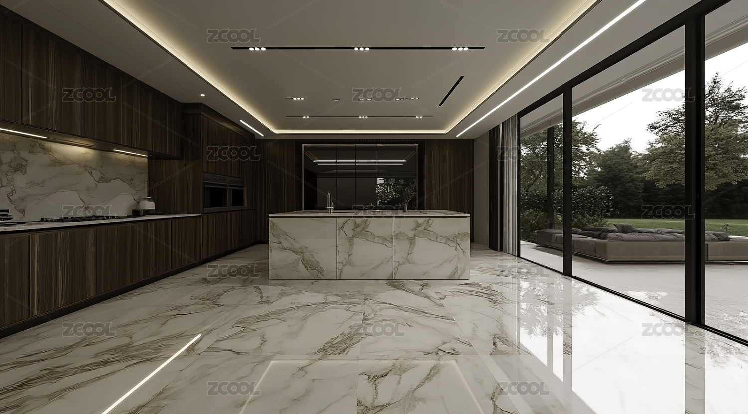 現(xiàn)代別墅樣板間開(kāi)放式廚房餐廳客廳素材