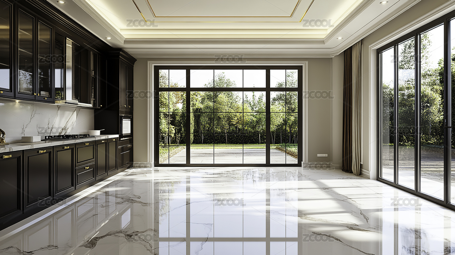 現(xiàn)代豪華別墅室內(nèi)廚房陽(yáng)臺(tái)高端定制