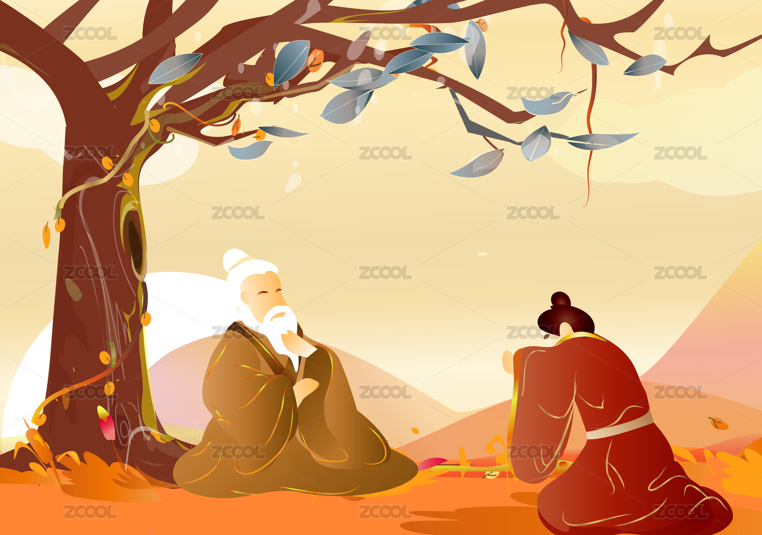 樹下中國古代人的拜師禮儀的插畫