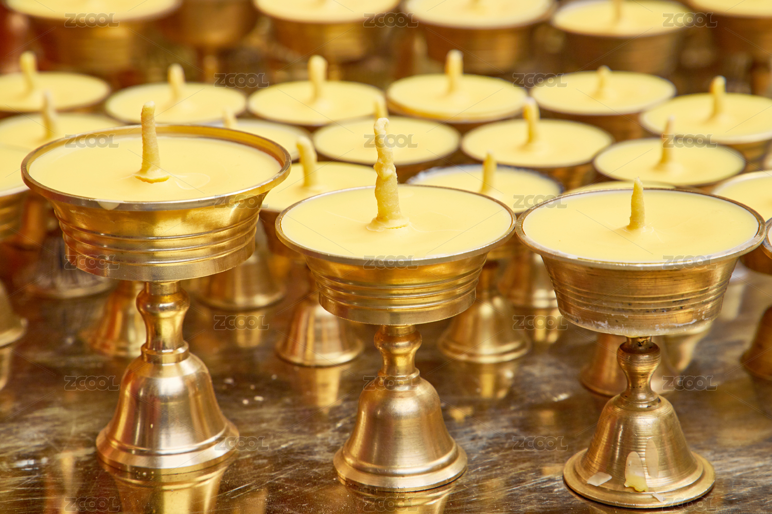 中國(guó)西藏拉薩色拉寺燃燈日點(diǎn)燃的酥油燈