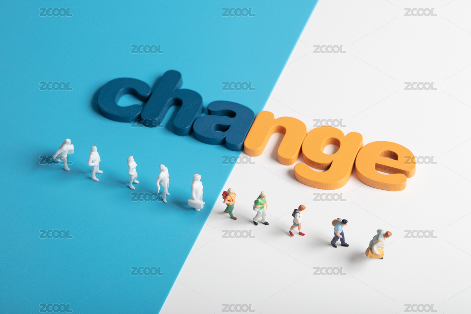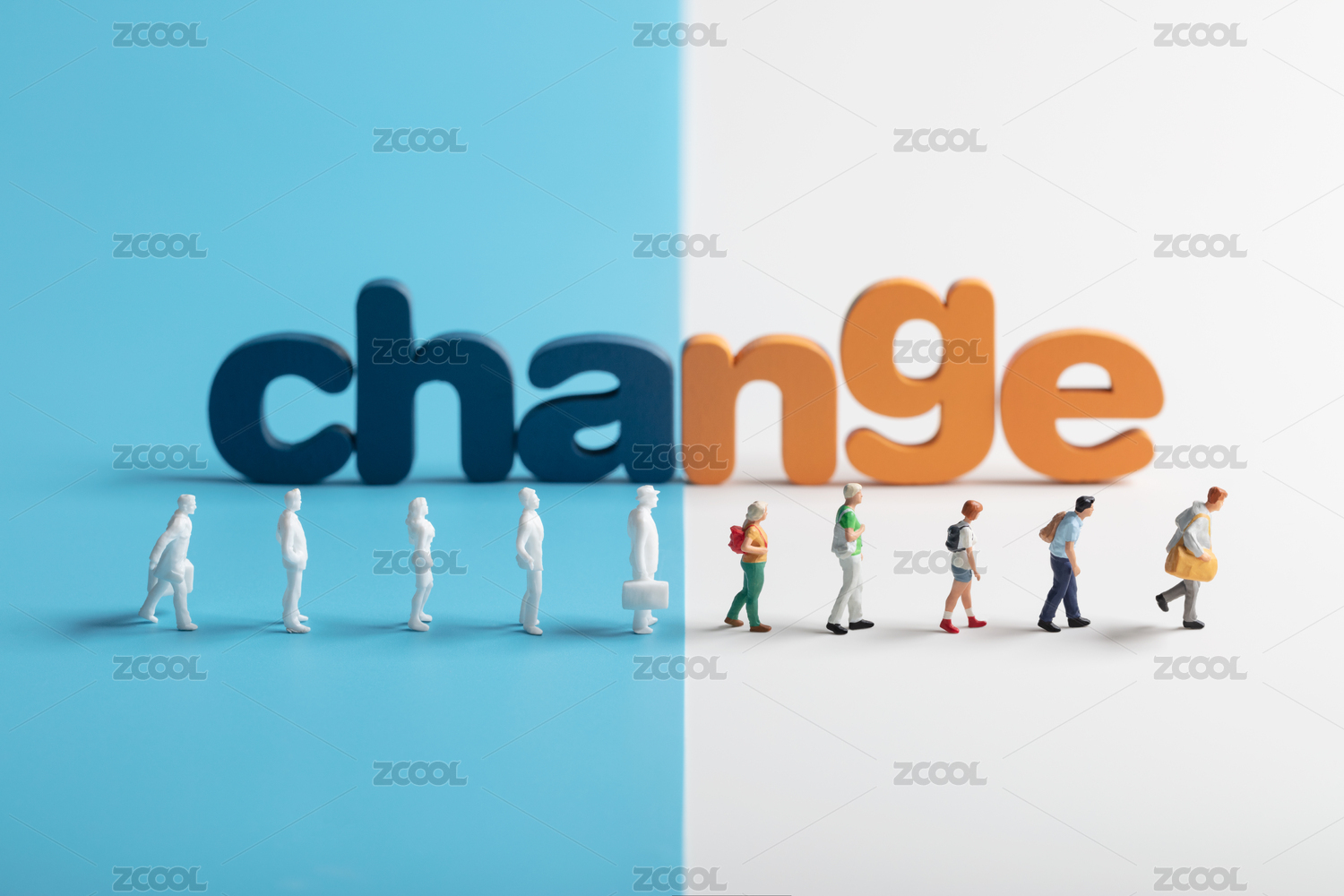 微縮創(chuàng)意字母change與嘗試改變的人群