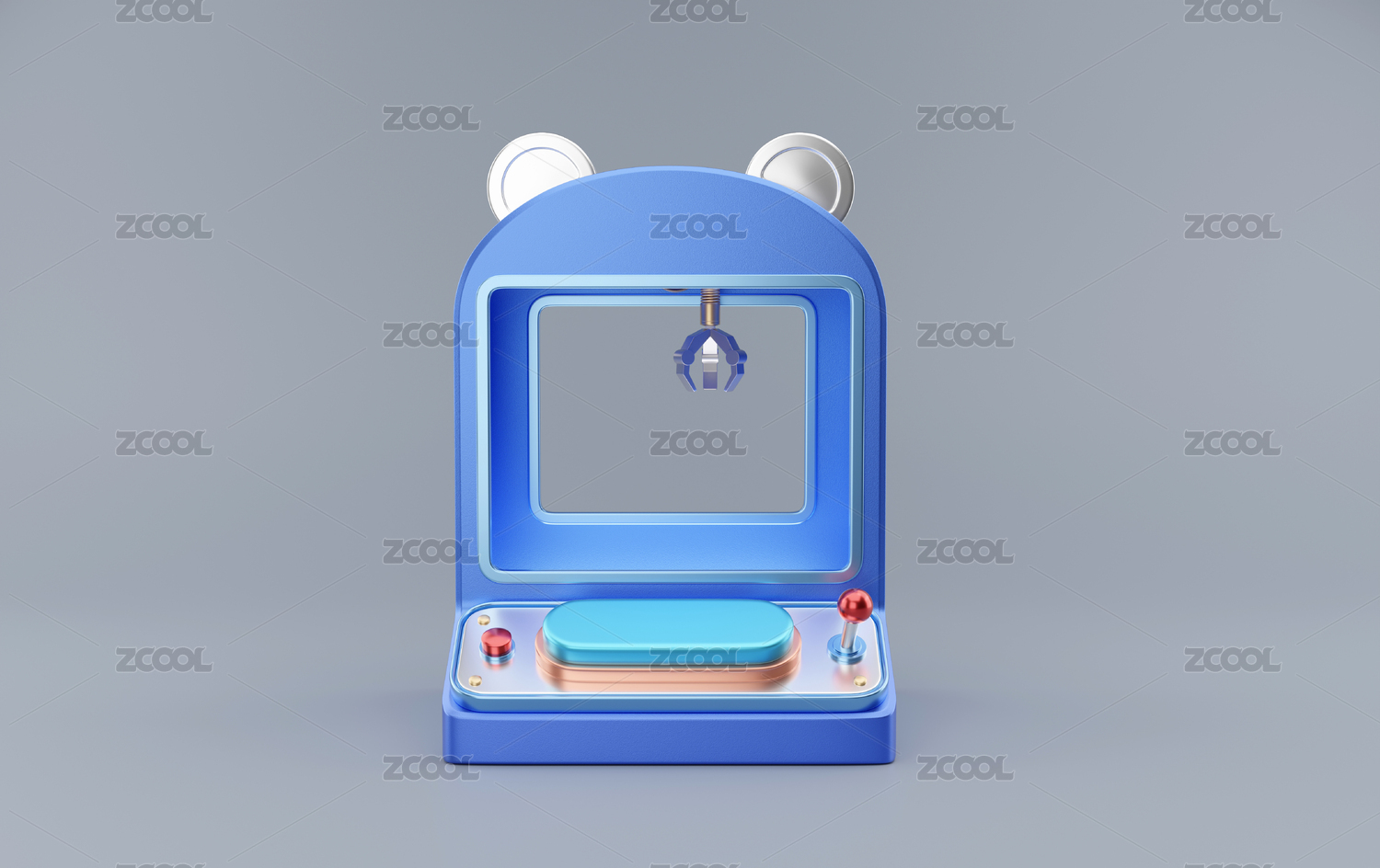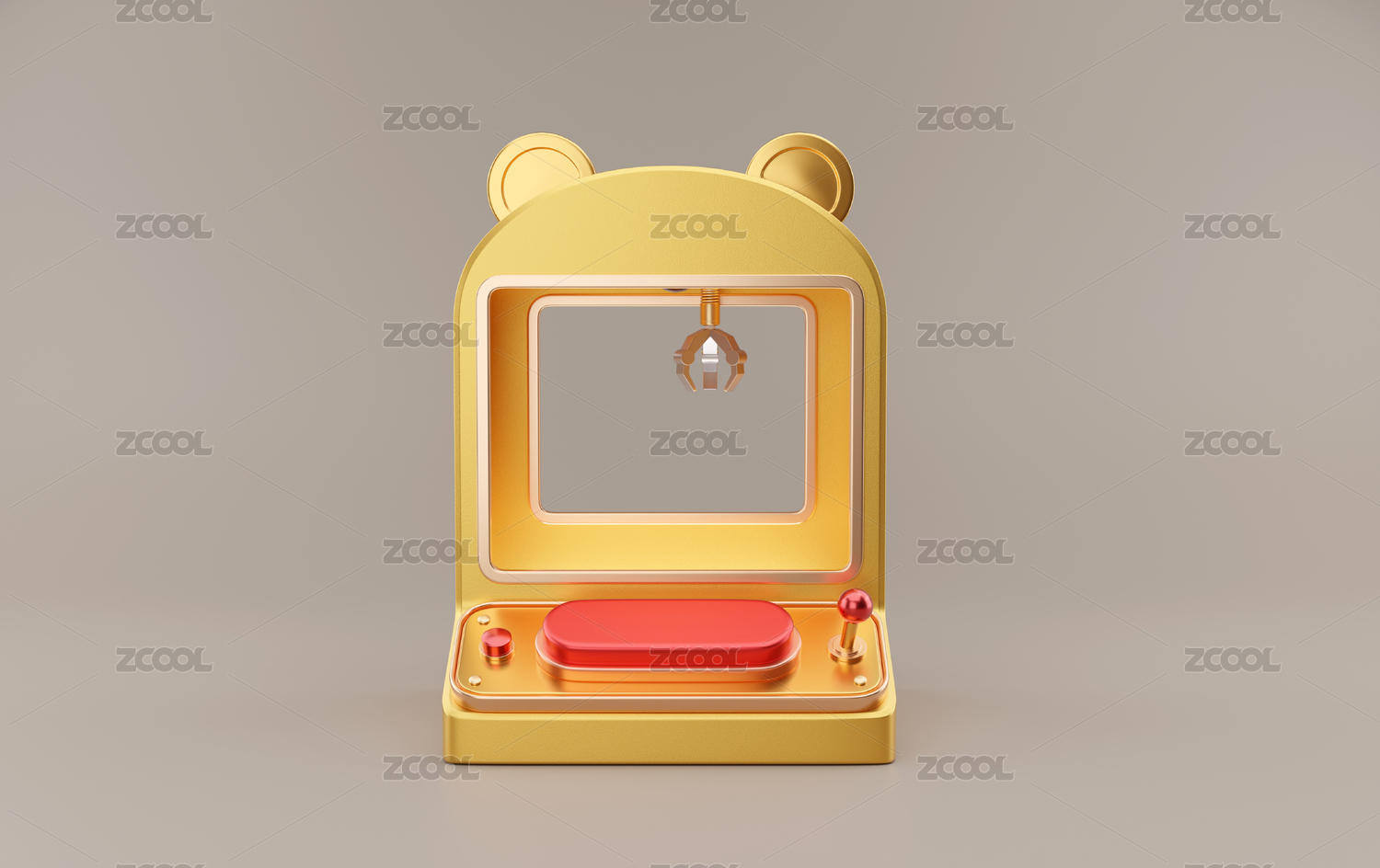 紅色背景中的3D卡通游戲扭蛋機(jī)娃娃機(jī)