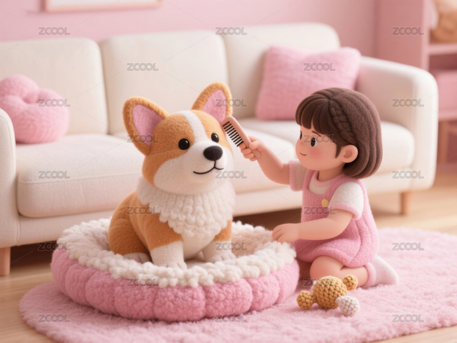 春季暖陽下職業(yè)女性在家中給寵物梳毛