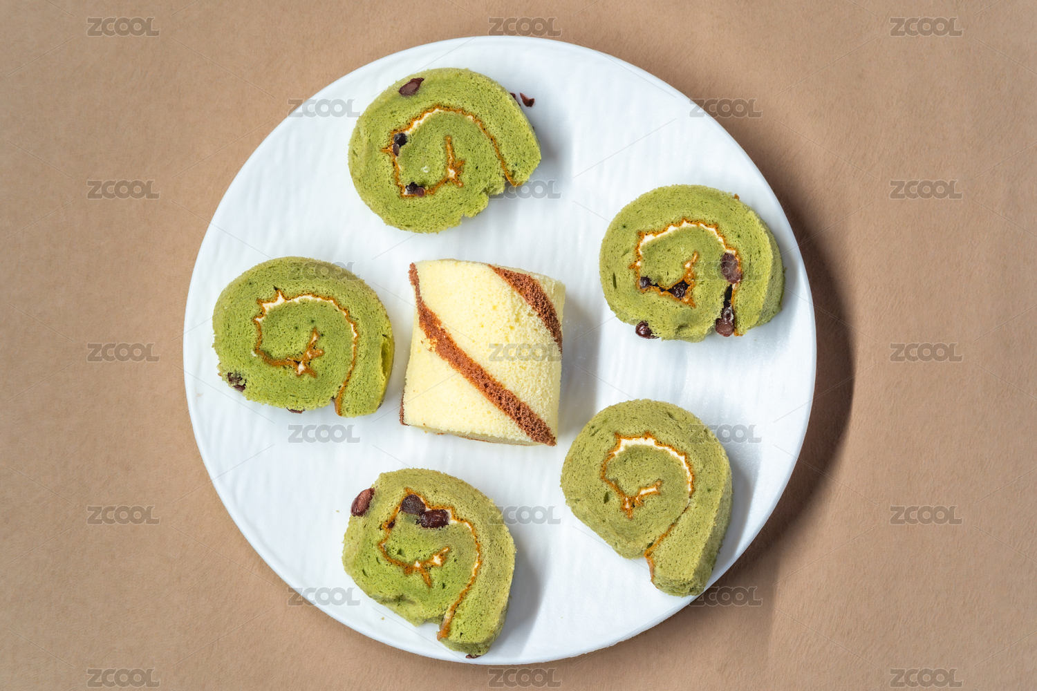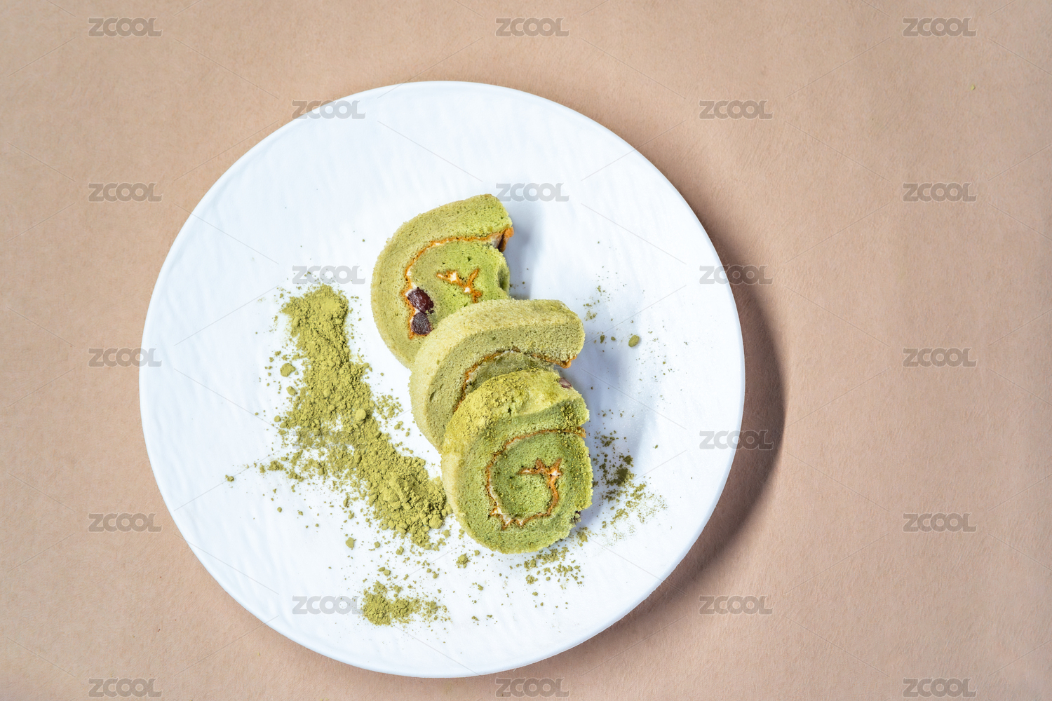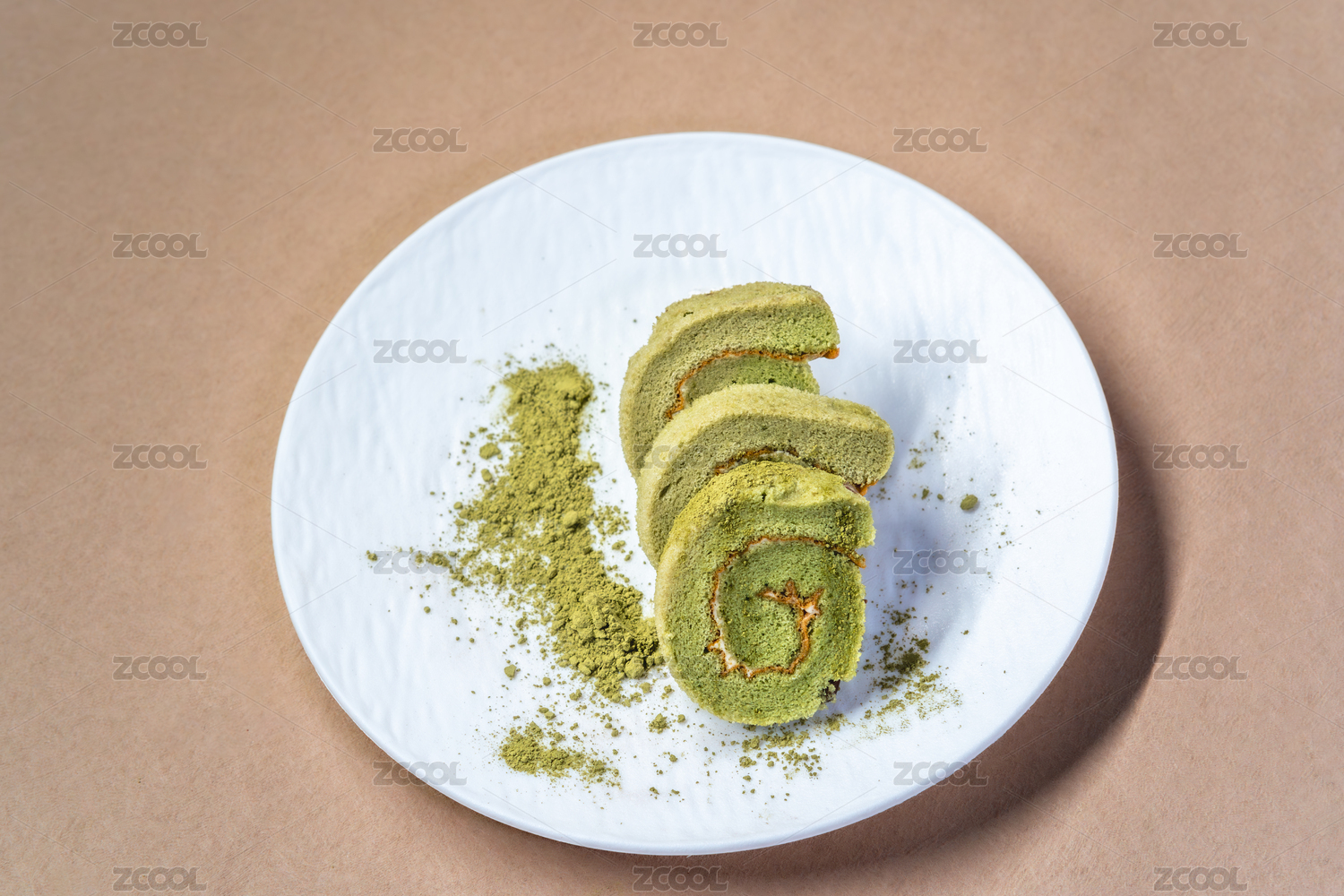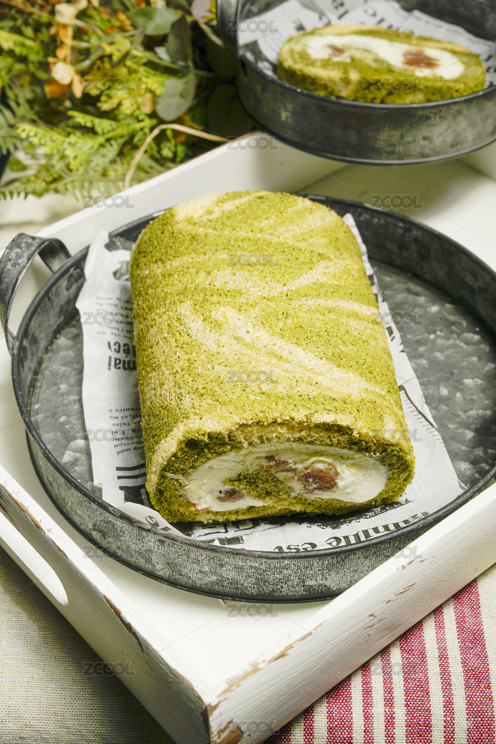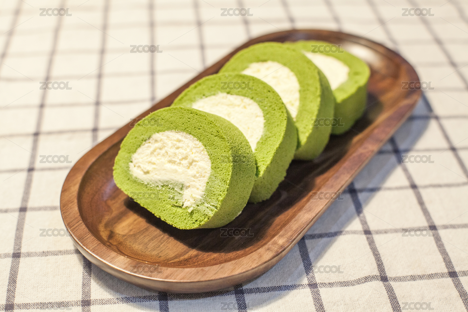 室內(nèi)拍攝的抹茶卷蛋糕