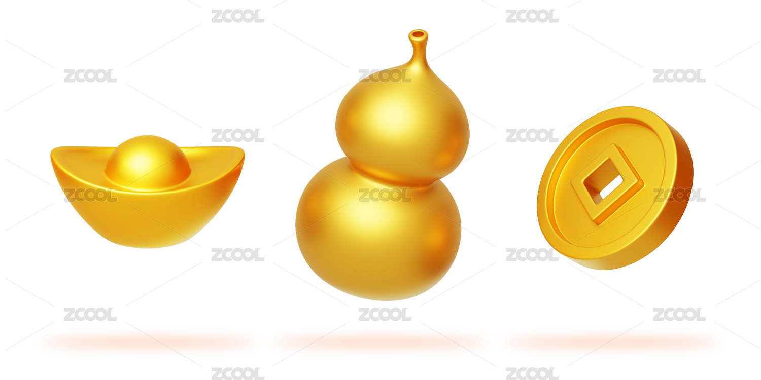 新年春節(jié)中國習(xí)俗金元寶葫蘆3D