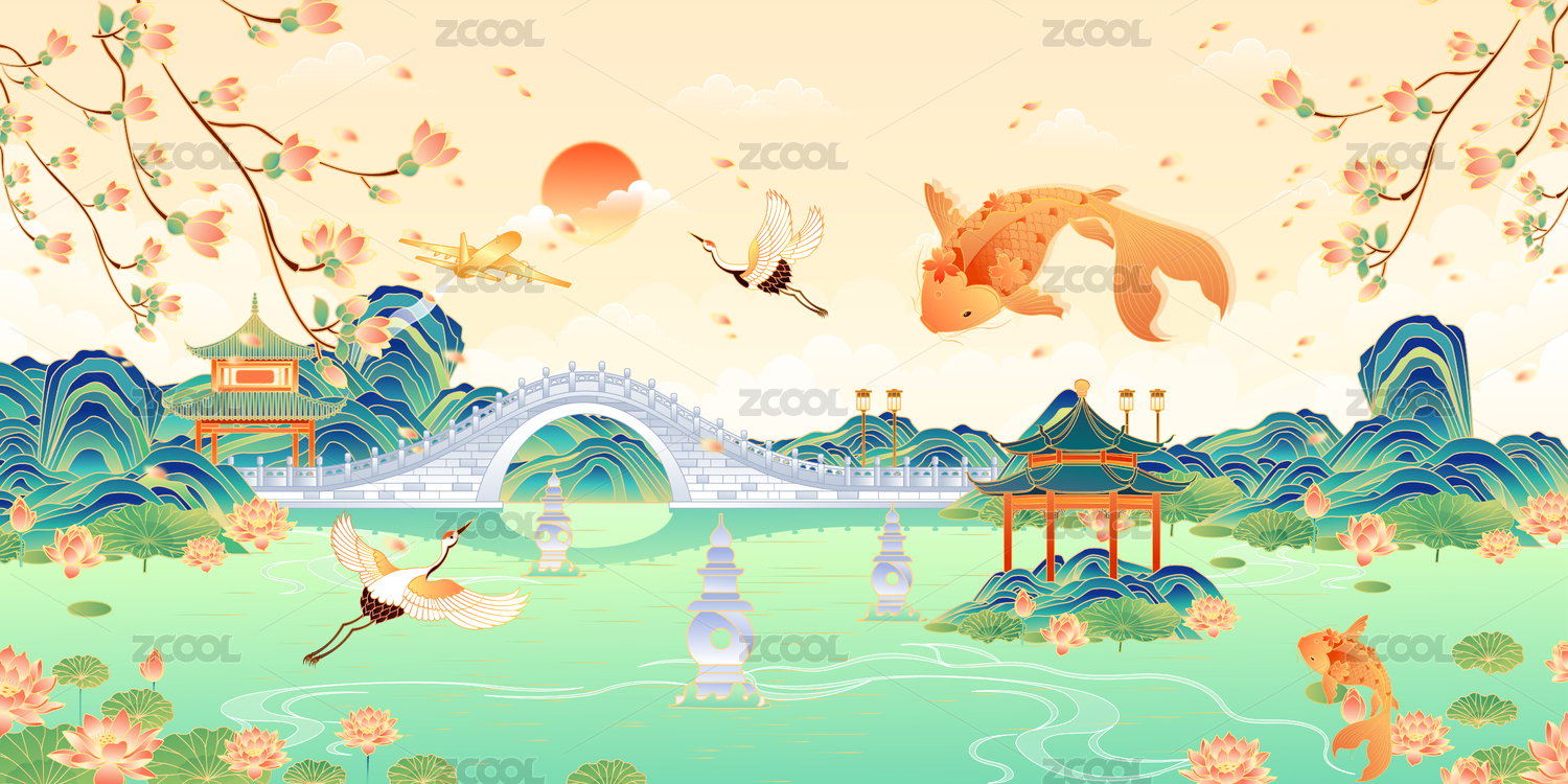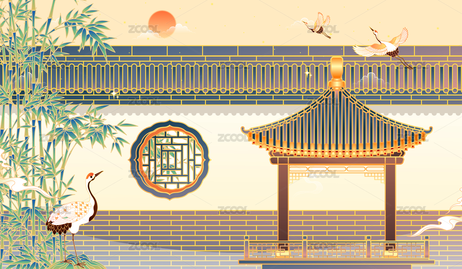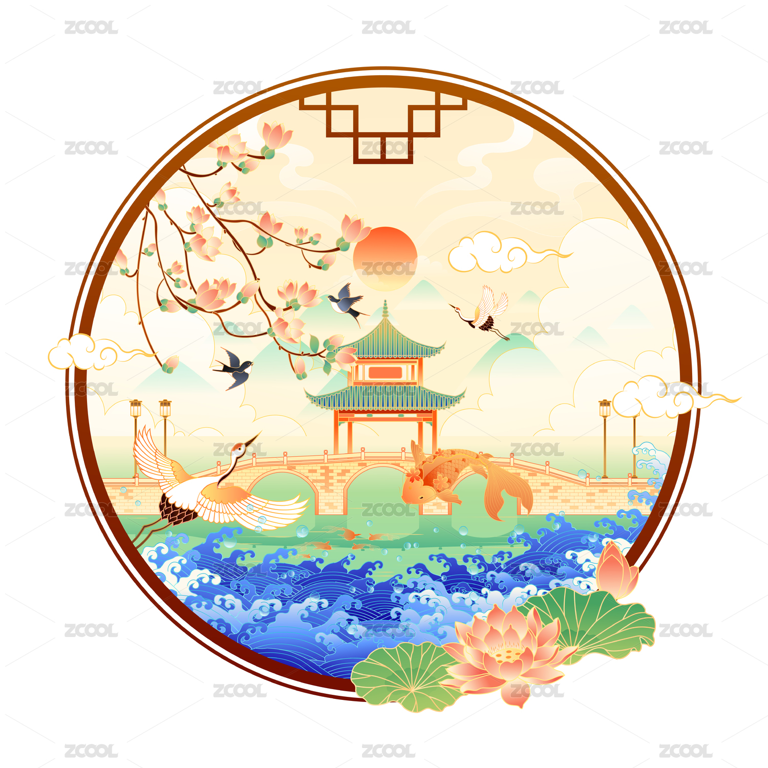 國(guó)潮風(fēng)中國(guó)古典園林矢量插畫(huà)