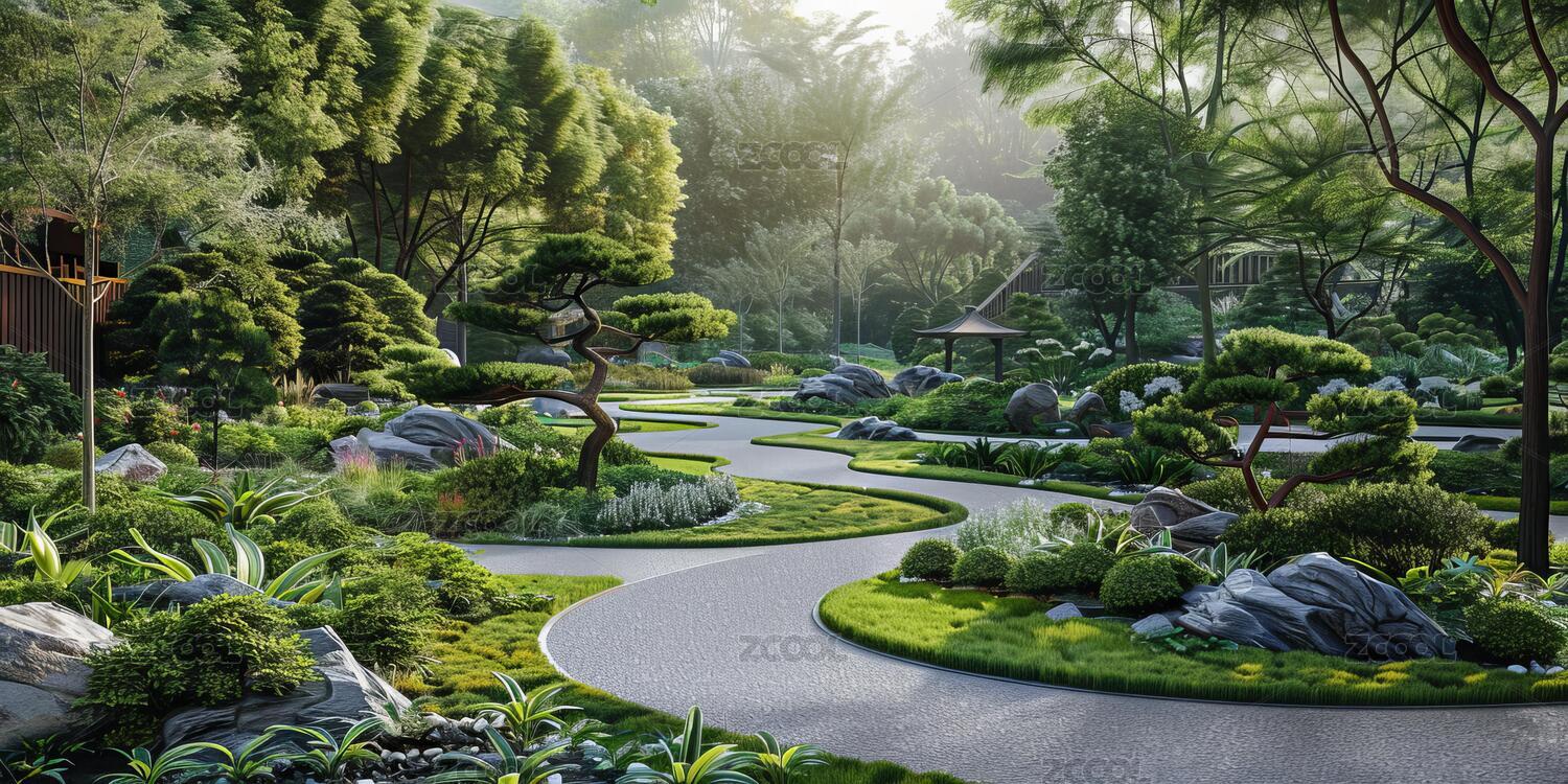中國(guó)風(fēng)園林庭院風(fēng)景矢量插畫(huà)